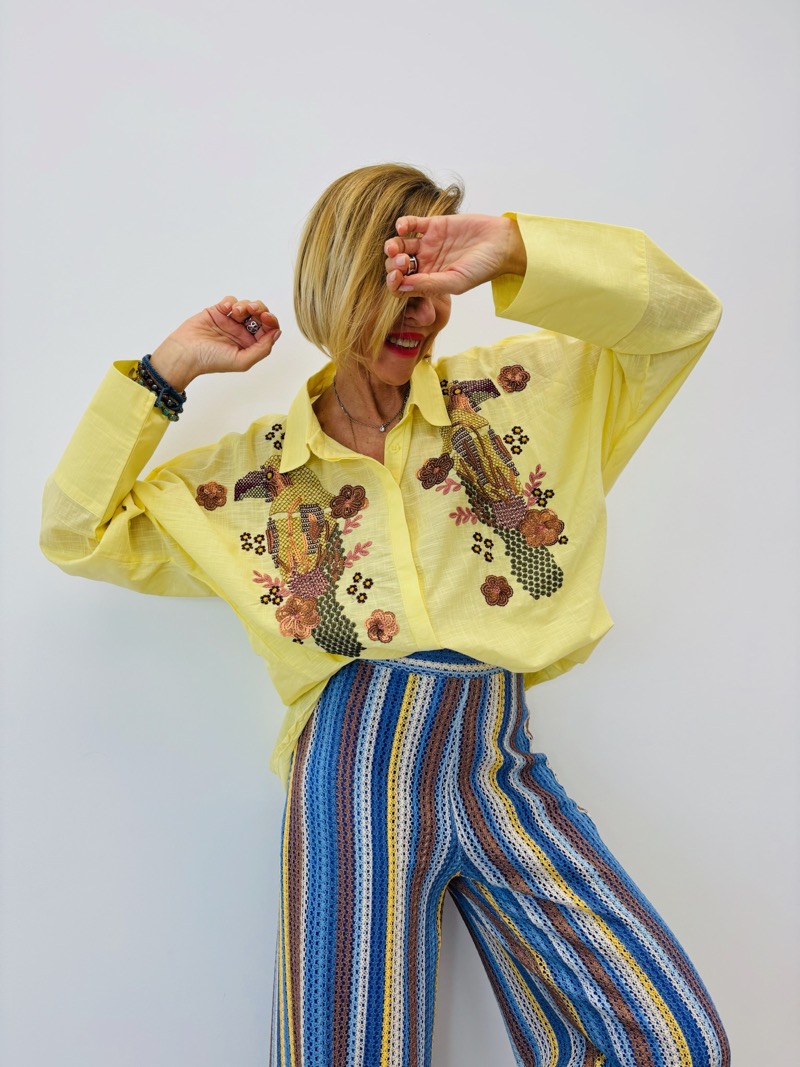 Véritable pièce coup de cœur, la chemise Perroquet SHANNYLA de la marque Ange illumine instantanément une silhouette. Confectionnée en 100% coton, elle séduit par sa matière naturelle, légère et agréable à porter, idéale pour la saison printemps/été.