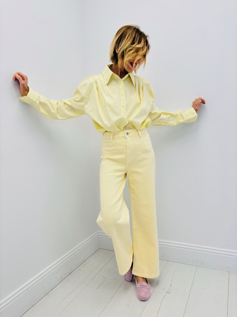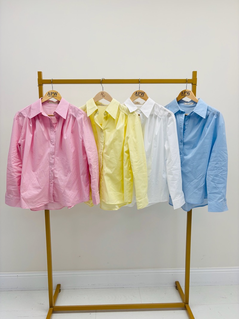Disponible dans des teintes douces et lumineuses (rose, jaune pastel, blanc et bleu), cette chemise s’intègre parfaitement dans une collection printemps-été moderne.