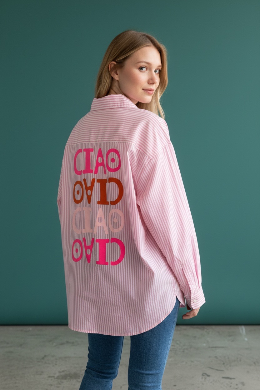 Chemise Rayée À Message “Ciao” Esprit Pop Chic