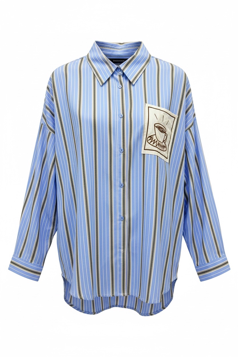 Chemise Rayée Bleue En Coton Avec Broderie Tasse Et Poche Illustration