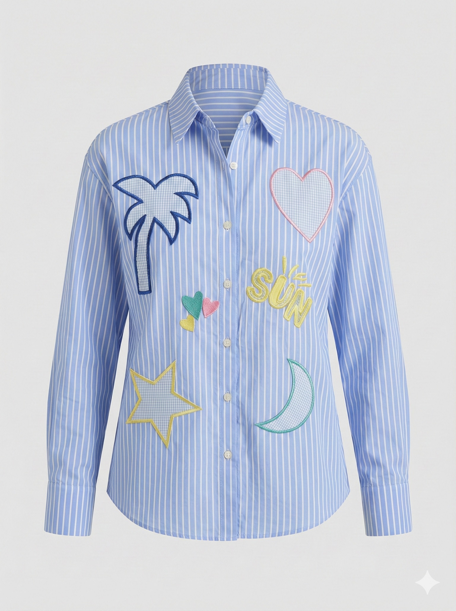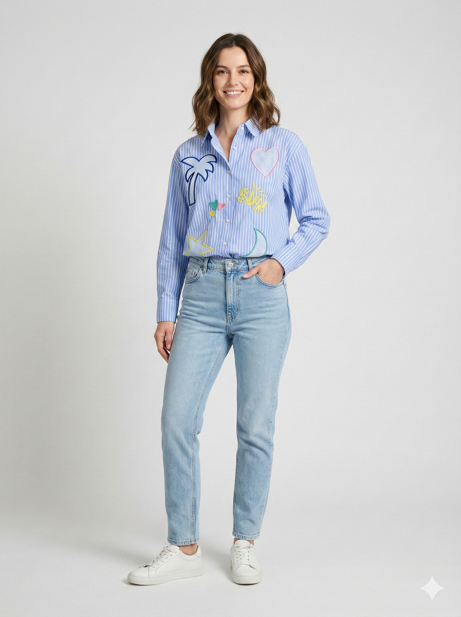 À porter avec un jean taille haute pour un look casual chic ou avec un pantalon fluide pour une silhouette plus mode. Idéale ouverte sur un top uni ou fermée pour mettre en valeur les broderies. Une chemise parfaite pour apporter une touche de fantaisie à une tenue du quotidien tout en restant élégante et facile à vendre en boutique.