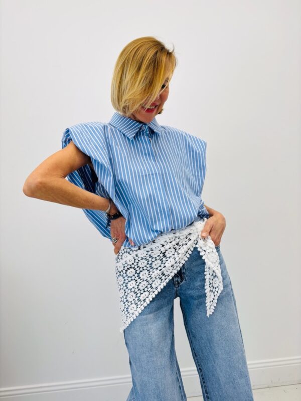 Confectionnée en 100% coton, elle offre une matière respirante et confortable, idéale pour un porté quotidien. Les rayures verticales allongent visuellement la silhouette tandis que la coupe légèrement courte modernise la pièce et la rend parfaite avec des pantalons ou jeans taille haute.