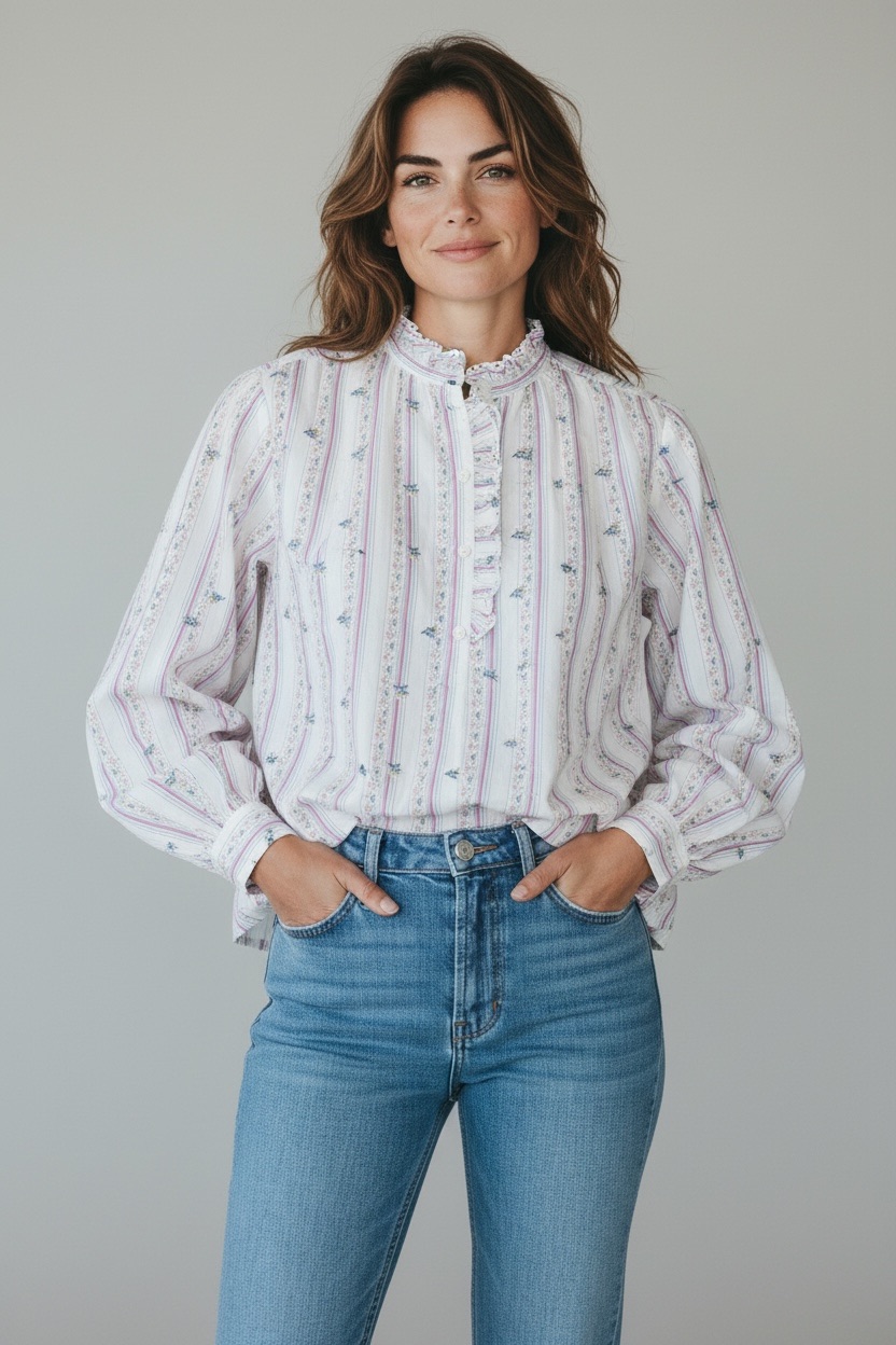 Chemise Rayée en Coton à Volants – esprit romantique et élégance naturelle