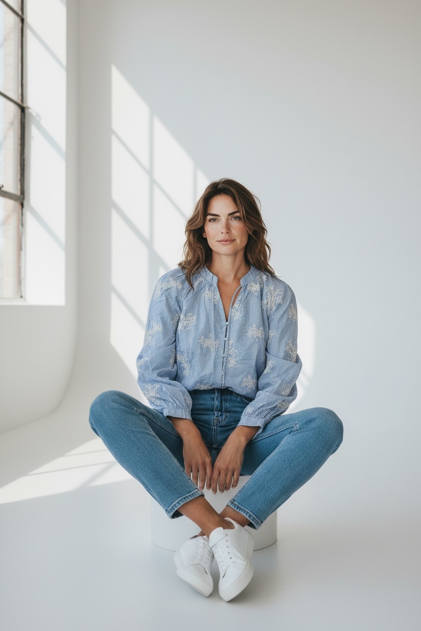 Portée avec un pantalon clair ou un jean taille haute, cette chemise crée une silhouette douce et élégante. Elle peut se porter légèrement blousante pour un esprit décontracté ou plus ajustée pour un look structuré. Une pièce idéale pour composer des tenues féminines, lumineuses et faciles à proposer en boutique, aussi bien en vitrine qu’en look complet.