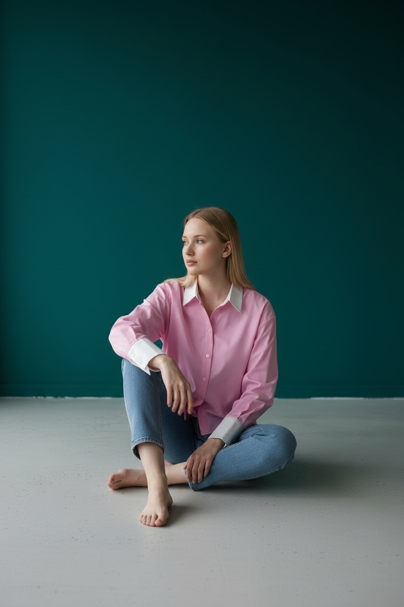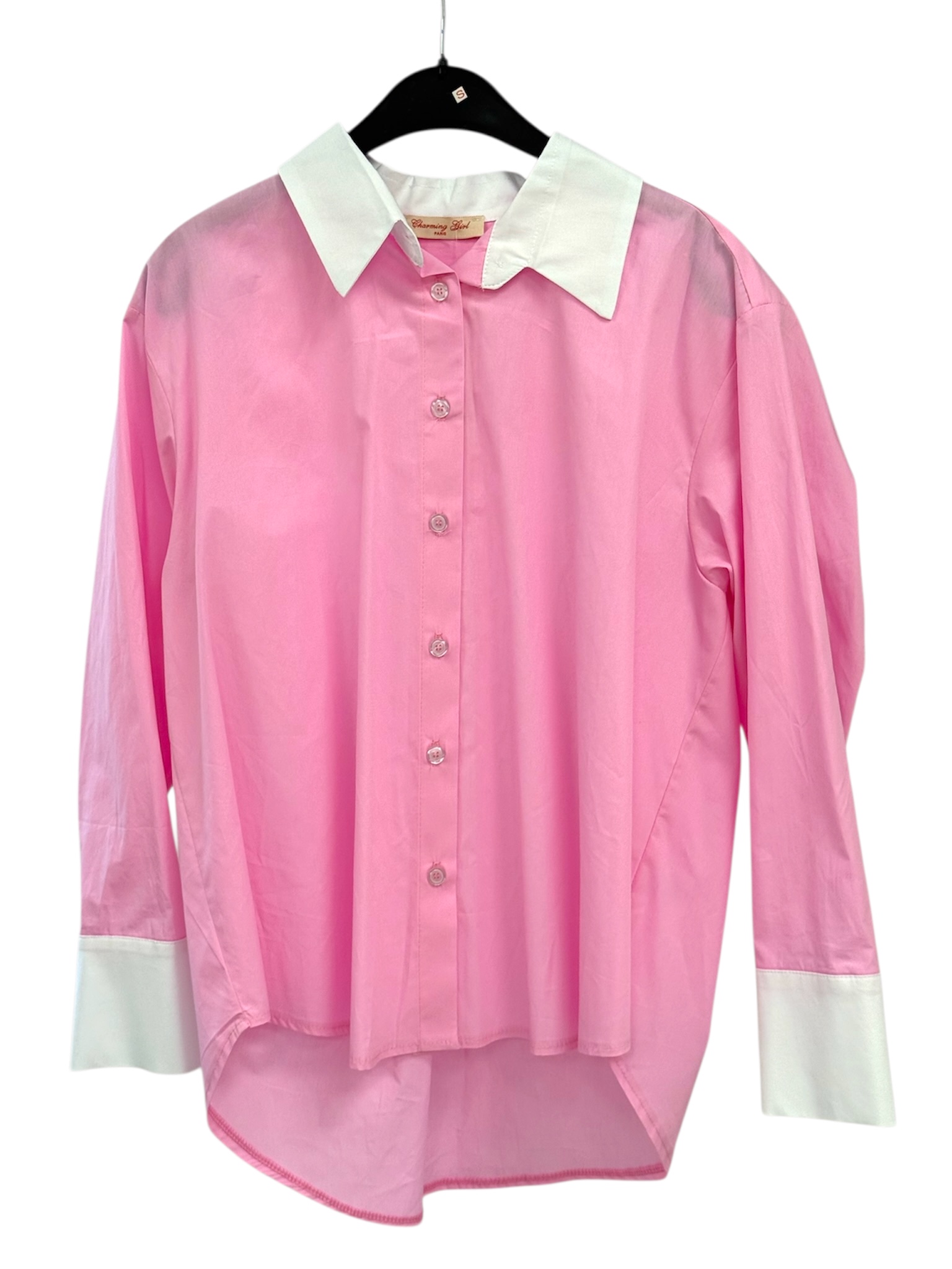 Chemise Rose À Col Et Poignets Blancs Élégance Intemporelle