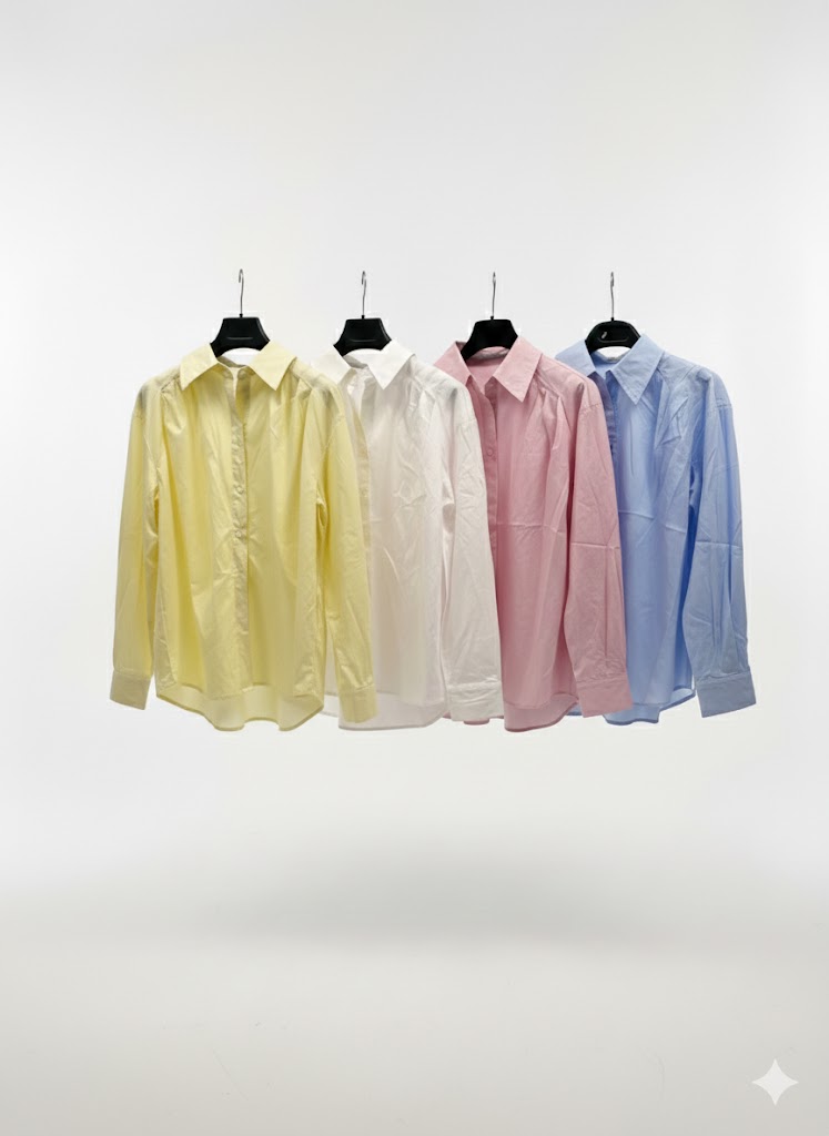 Cette chemise unie séduit par son design intemporel et sa palette de coloris doux et lumineux, idéale pour composer une offre boutique à la fois élégante et facile à porter. Sa coupe droite légèrement fluide assure une silhouette naturelle, confortable et flatteuse, adaptée à un usage quotidien comme à des looks plus habillés.