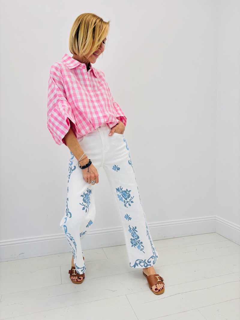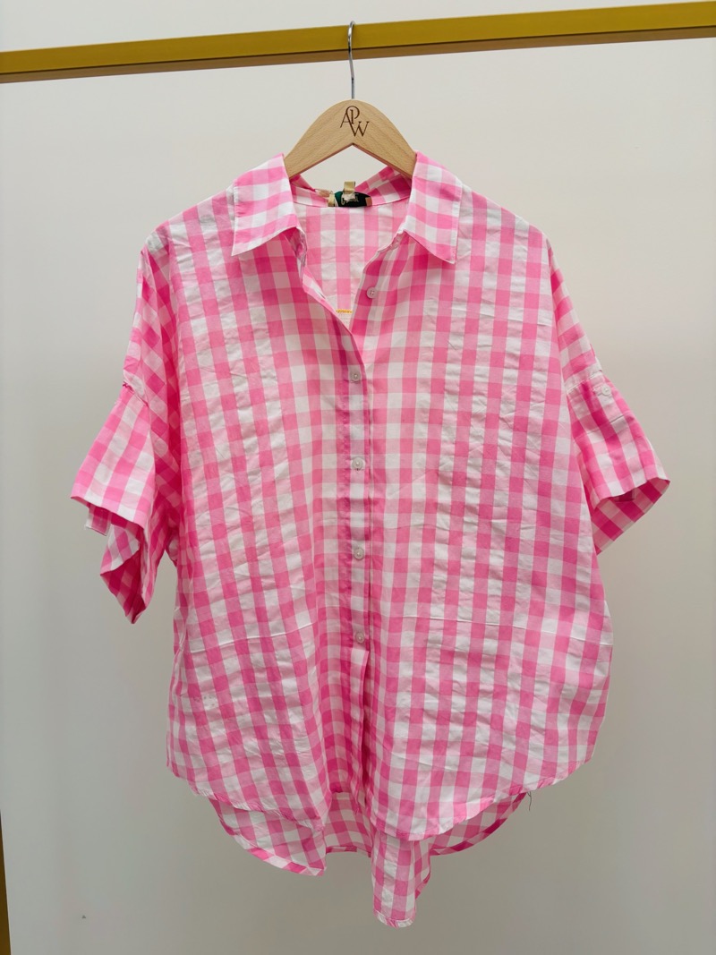 Polyvalente, cette pièce peut se porter ouverte sur un top, rentrée dans un pantalon taille haute ou simplement lâchée pour un look effortless. Le motif vichy rose et blanc apporte une note lumineuse qui dynamise instantanément une tenue.