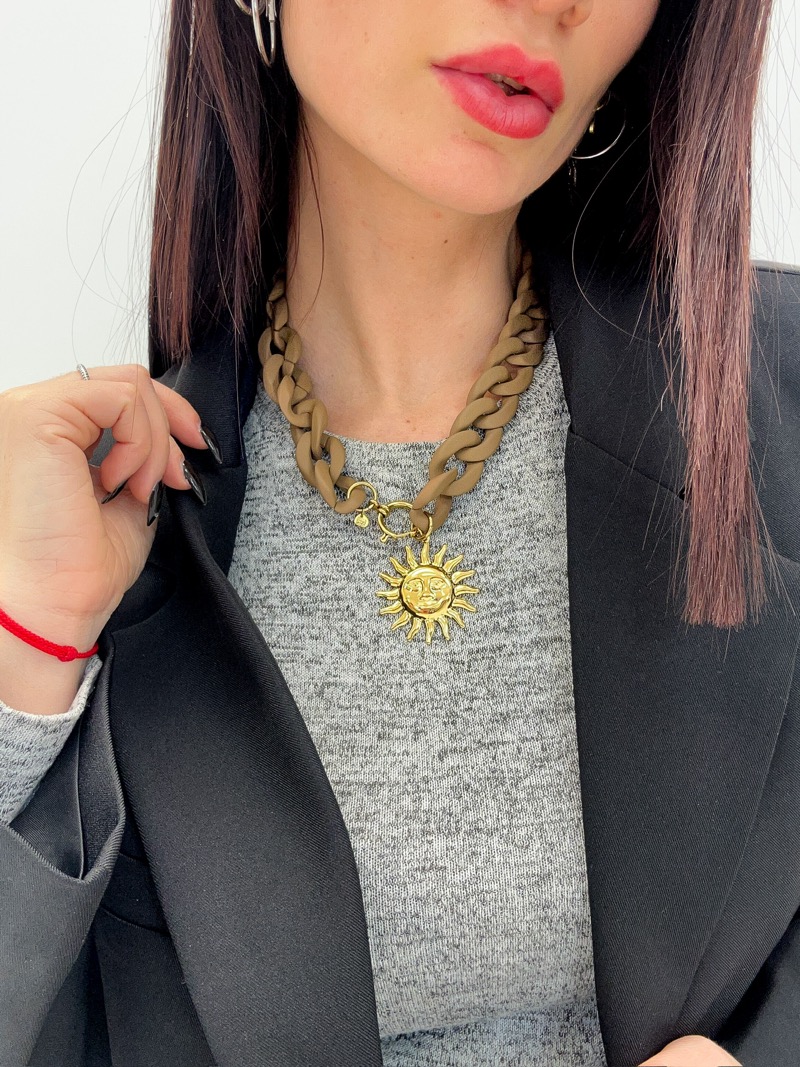 Collier Chaîne épaisse Colorée pendentif soleil doré
