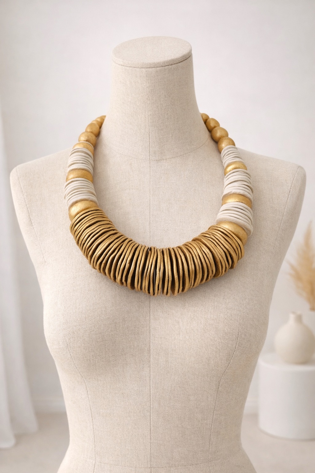 Collier Ethnique En Bois Doré