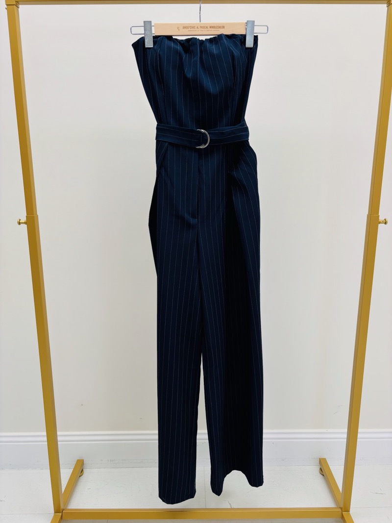 Élégante et moderne, cette combinaison bustier rayée est une pièce forte qui allie féminité et sophistication. Son tissu fluide à fines rayures verticales apporte une touche graphique subtile tout en allongeant visuellement la silhouette.