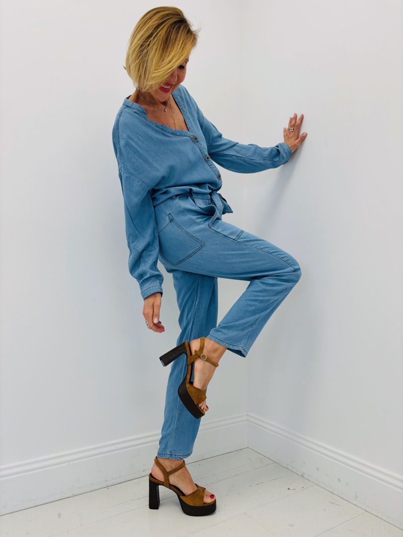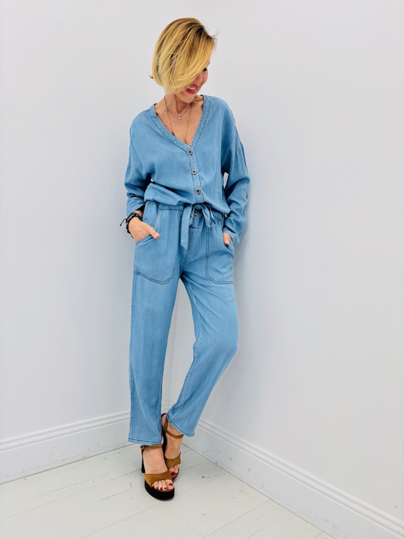 Cette combinaison en lyocell incarne parfaitement l’équilibre entre confort, modernité et élégance naturelle. Sa matière douce et respirante offre un tombé fluide et léger, idéal pour accompagner les silhouettes avec aisance tout au long de la journée.