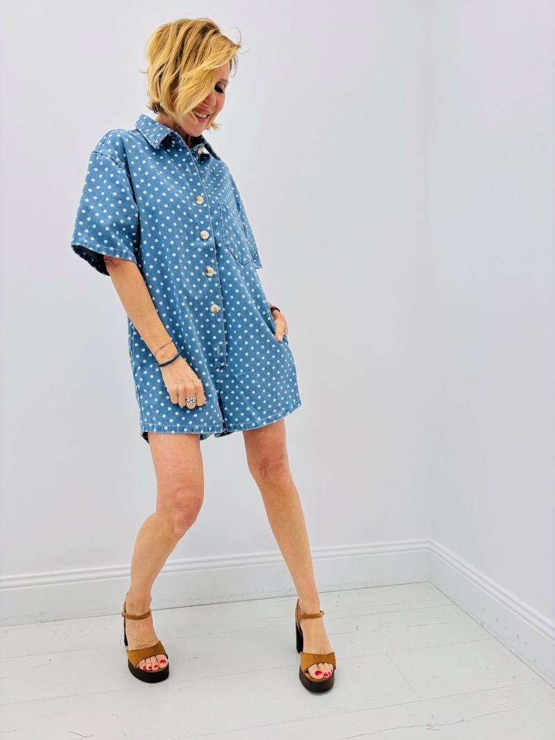 Combishort En Jean À Pois