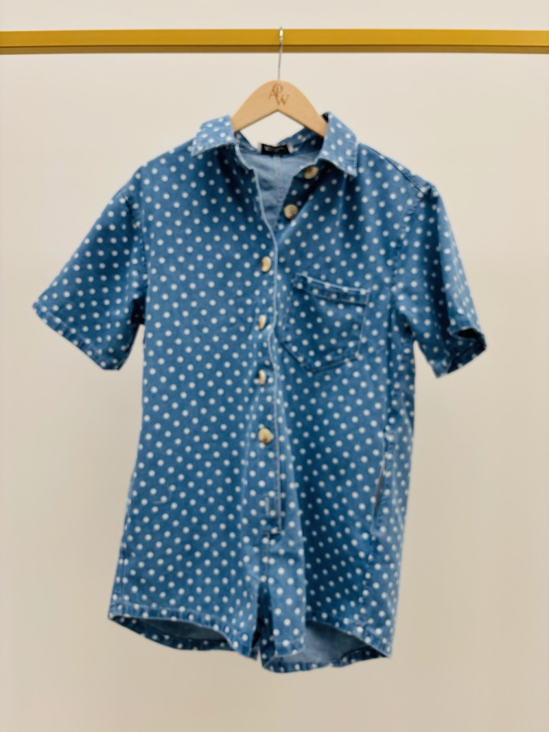 Découvrez notre combishort en jean, alliant confort et élégance avec son motif à pois distinctif. Ce vêtement est idéal pour apporter une touche de fraîcheur et d’originalité à votre garde-robe estivale.