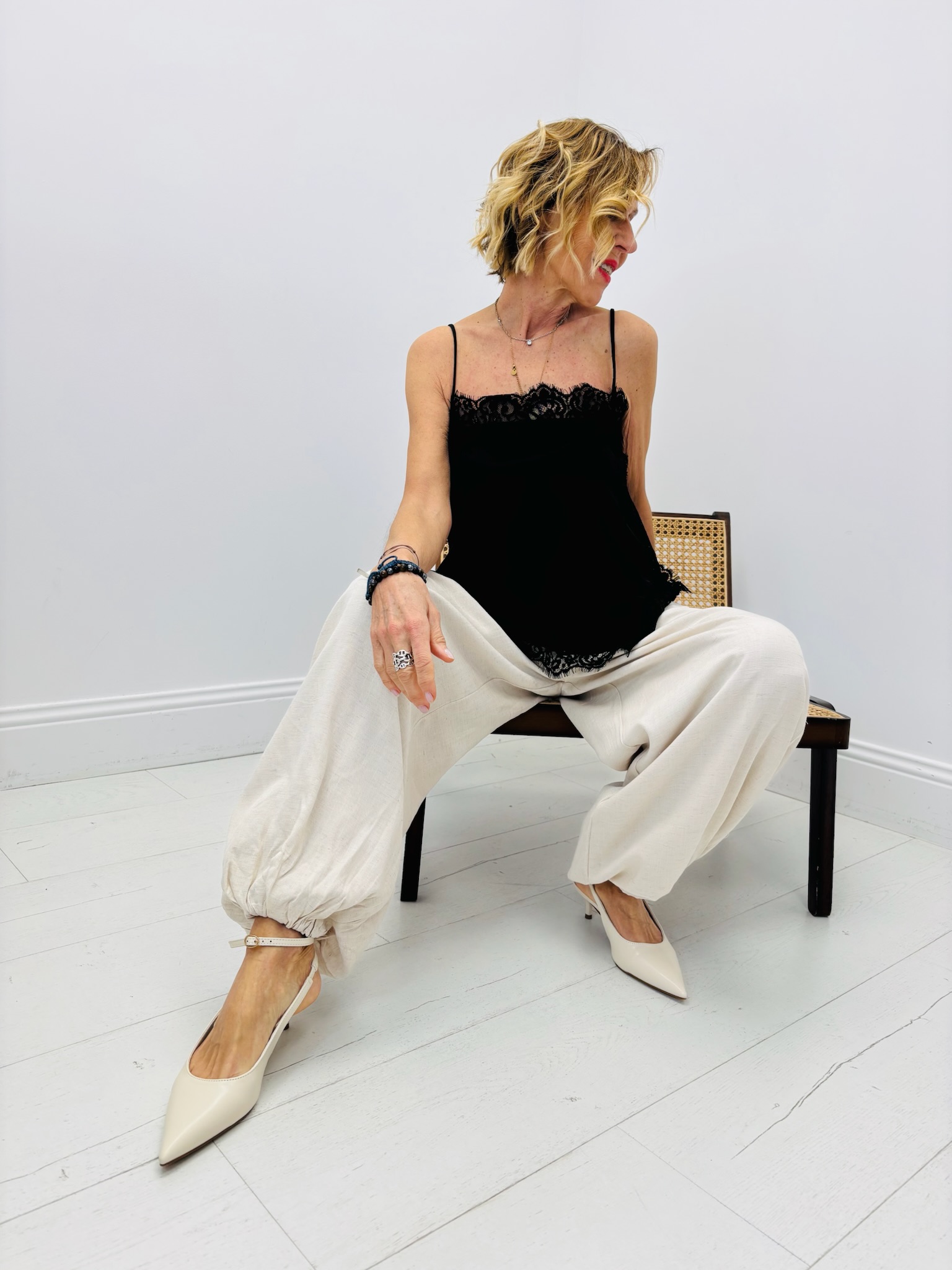 Apportez une touche de glamour à votre look avec ce débardeur en satin et dentelle. Associez-le à une jupe ou un pantalon tailleur pour un style chic et élégant, ou optez pour un jean pour un look plus décontracté et casual.