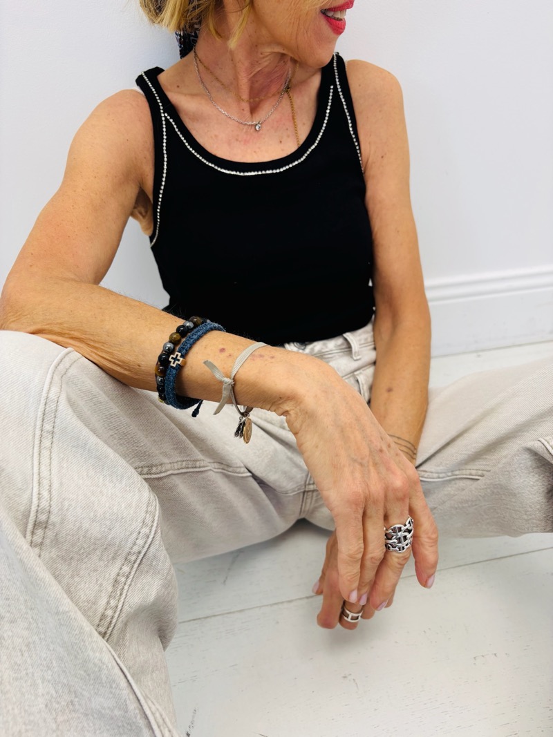 Ce débardeur est rehaussé de détails strass pour un look tendance. Parfait pour les journées décontractées ou pour une touche chic.