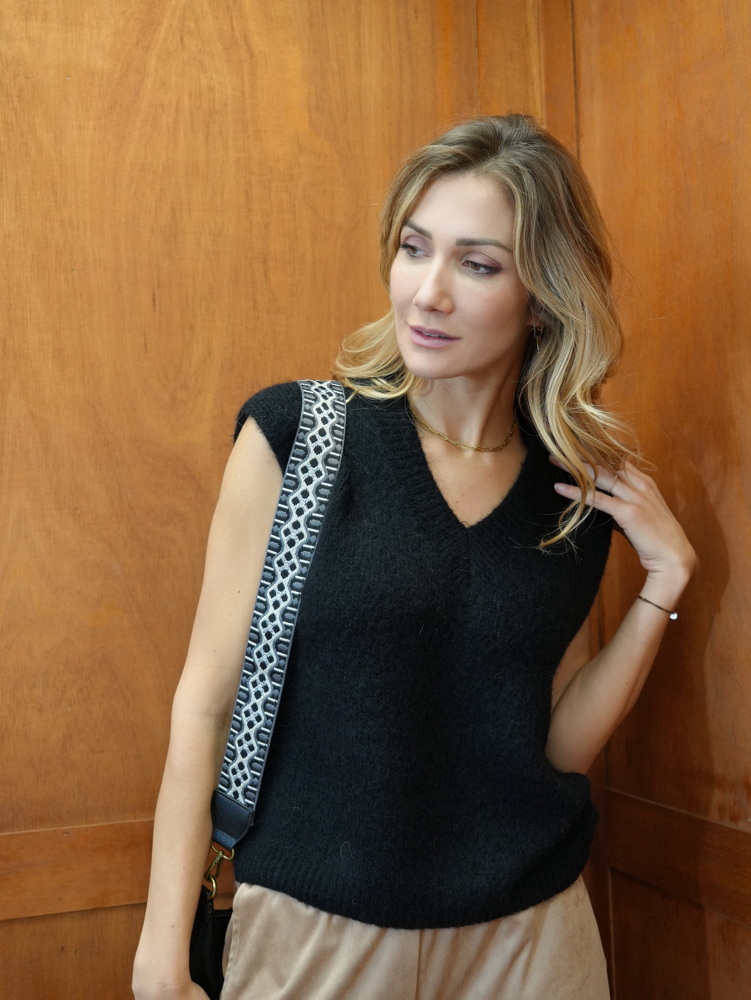 Débardeur Maille Douce Col V – 30% Kid Mohair & 20% Laine Made in Italy