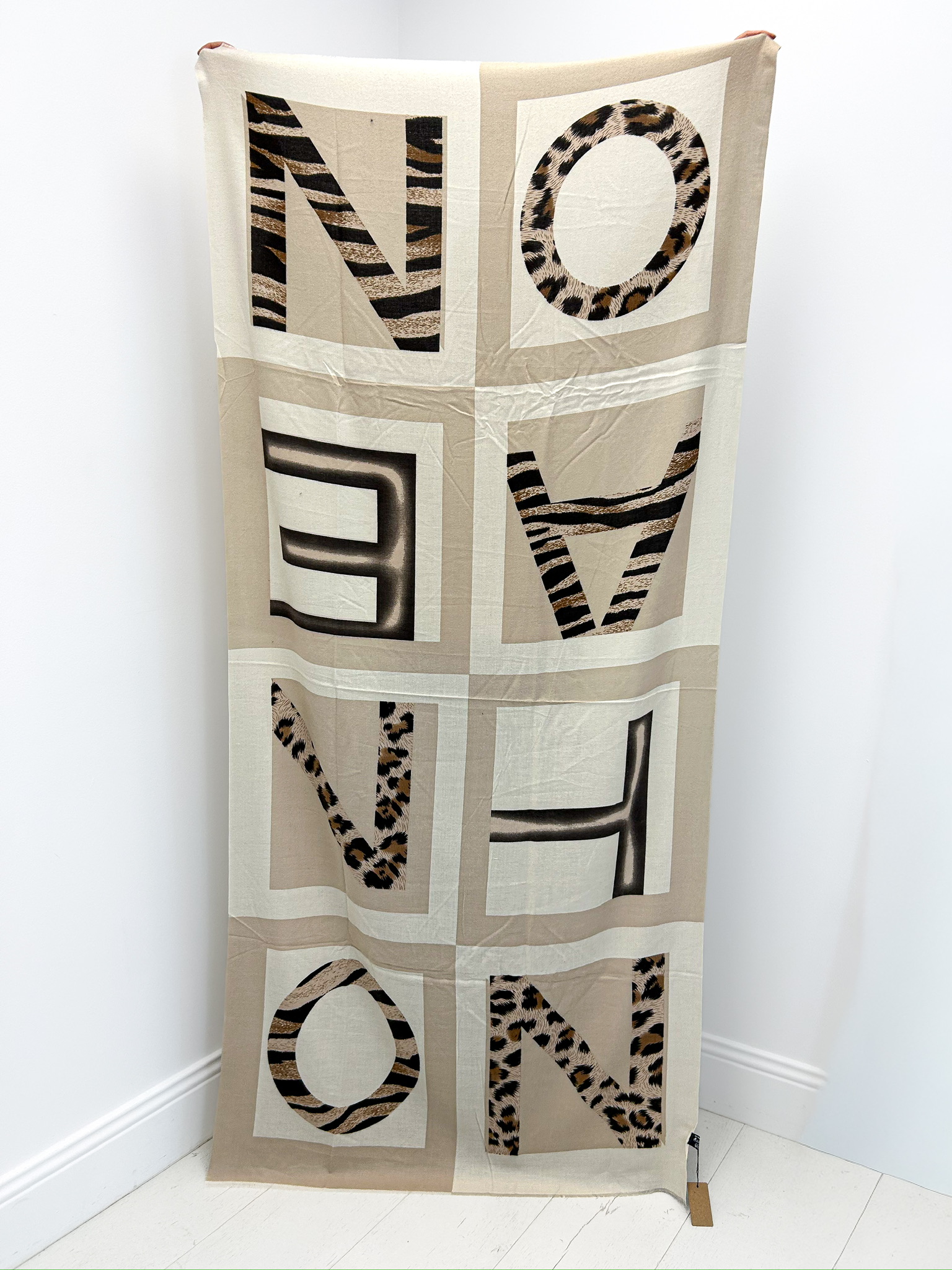 Écharpe Graphique imprimé lettres et motif léopard – style chic & moderne 100% viscose
