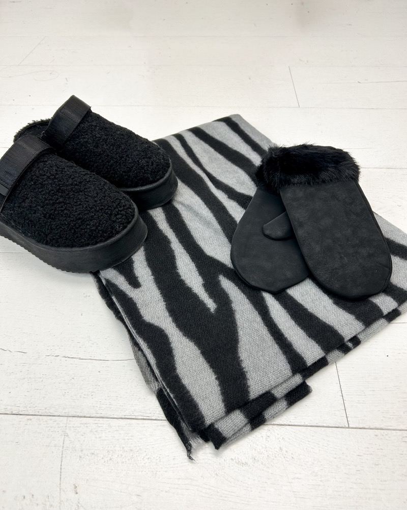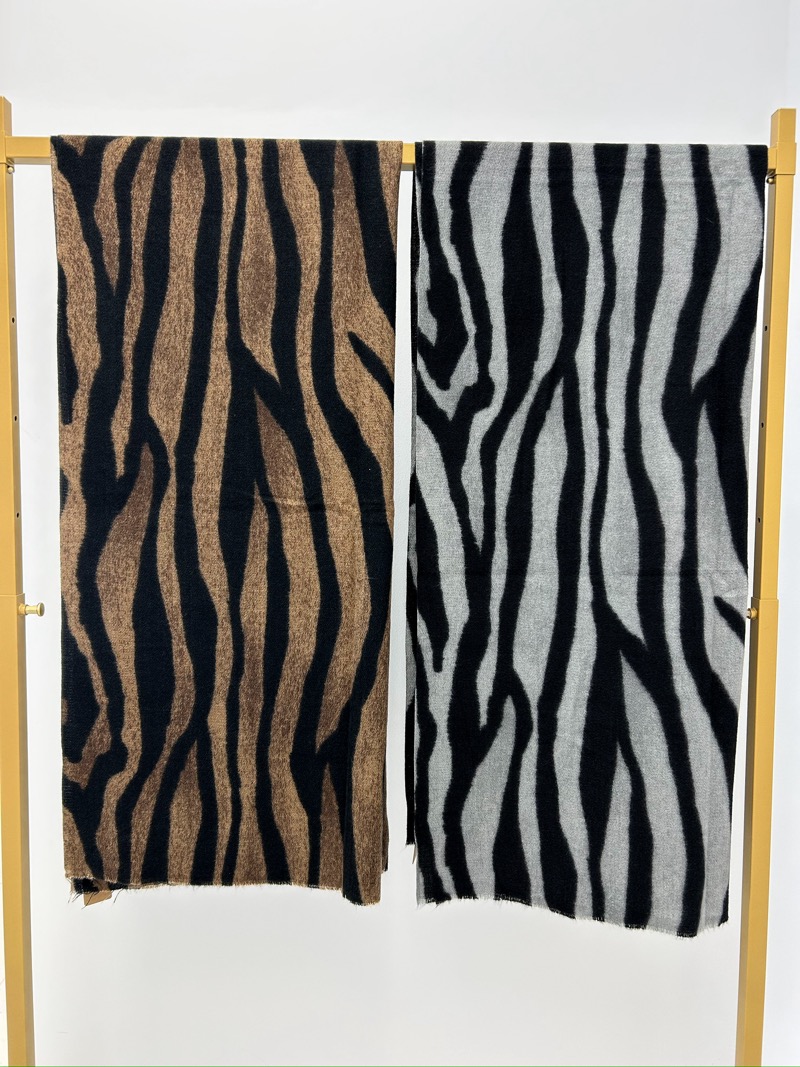 Parfaite pour rehausser un manteau uni ou une tenue neutre, l’écharpe zébrée apporte immédiatement un effet mode sans effort.