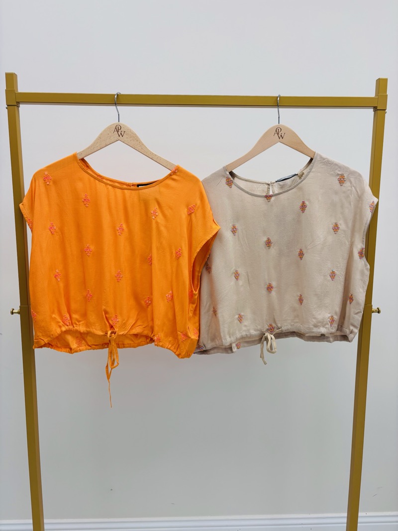 Le top peut également être associé à un jean ou un short, et la jupe à un débardeur ou une chemise pour varier les styles. Une tenue polyvalente, idéale pour des looks lumineux, raffinés et sans effort.