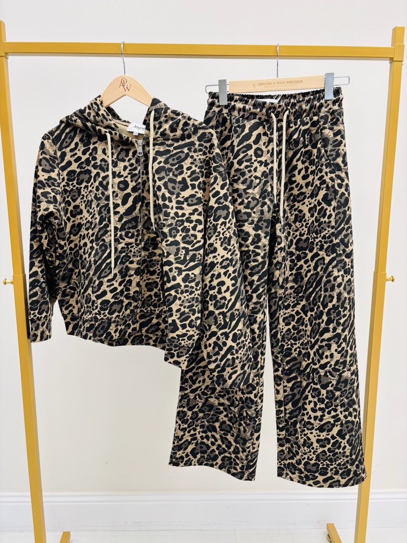 L’imprimé léopard apporte une dimension mode forte, très recherchée dans les collections casual actuelles. Facile à porter, cet ensemble s’inscrit dans la tendance athleisure qui mêle confort et style. Une pièce idéale pour les boutiques souhaitant proposer un look complet, moderne et facile à vendre.