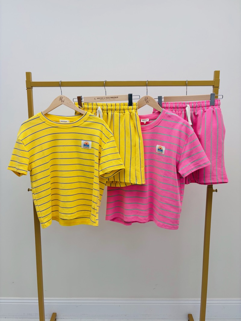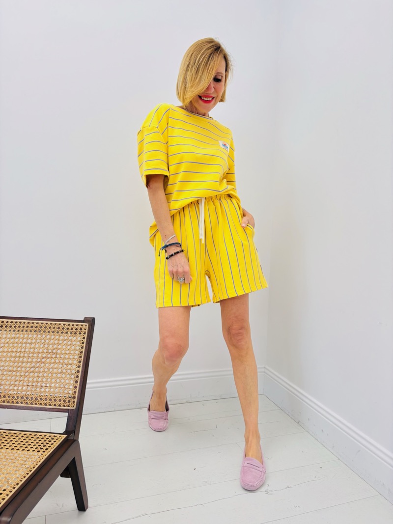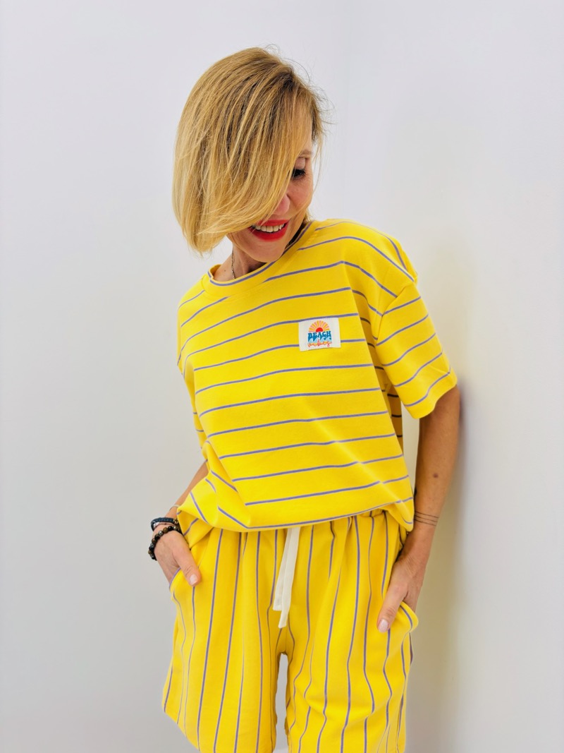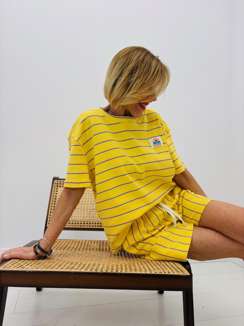 Découvrez cet ensemble rayé, parfait pour un style décontracté mais chic. Composé d’un t-shirt et d’un short, il est idéal pour les journées estivales.