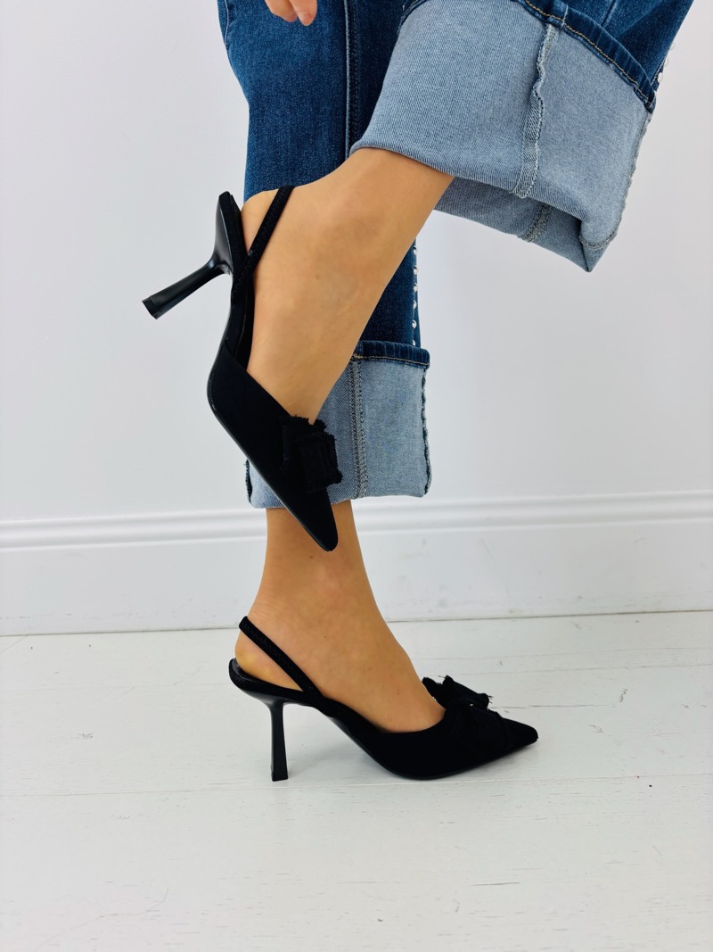 Escarpins Slingback à Talon Fin et Nœud Couture