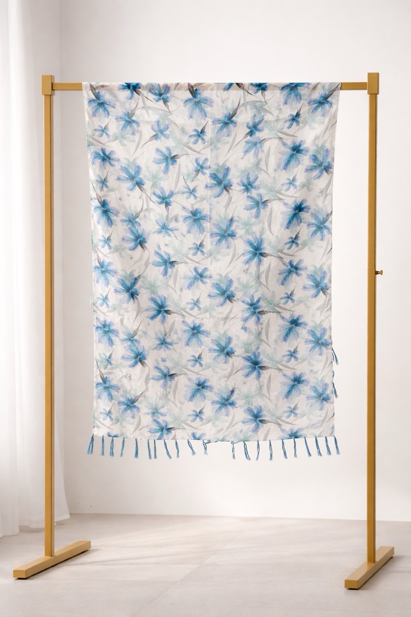 Découvrez ce délicat foulard en coton orné de motifs fleuris. Parfait pour ajouter une touche d’élégance à n’importe quelle tenue.
