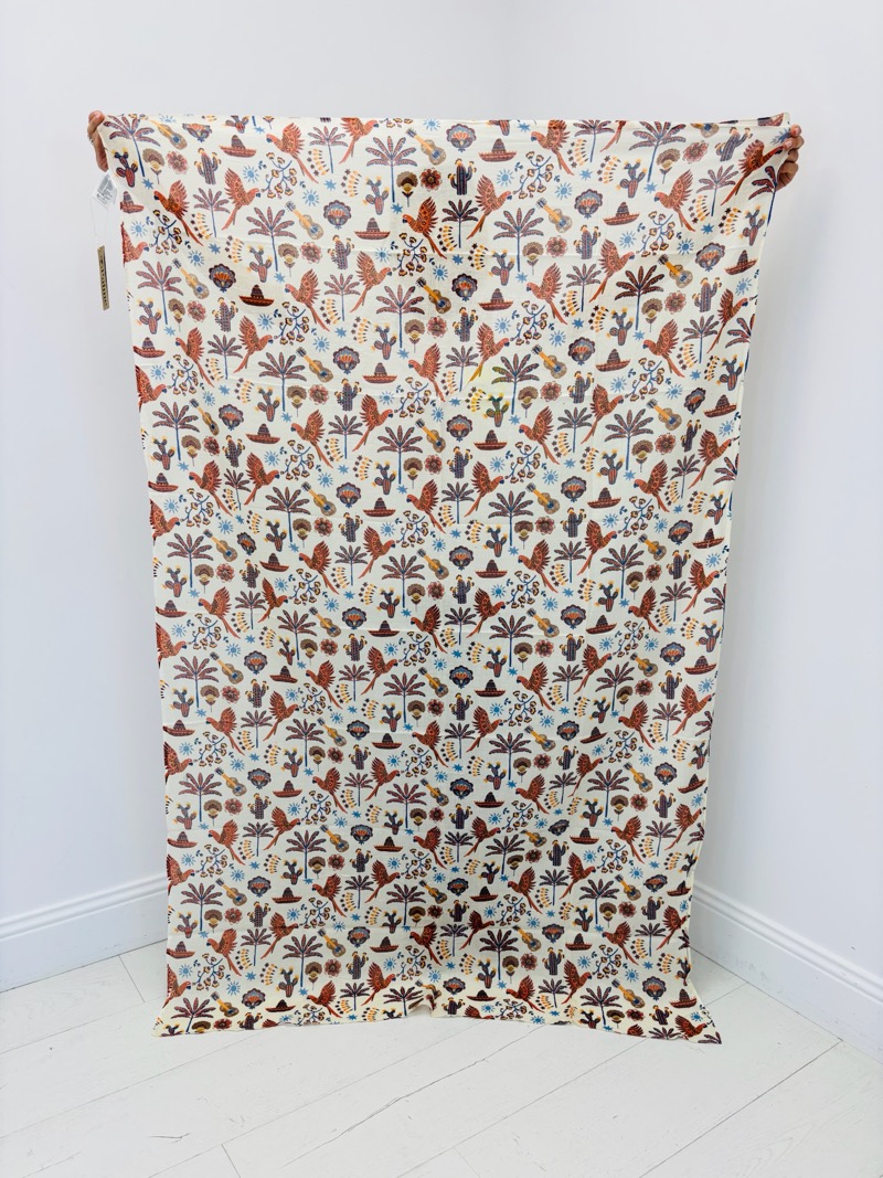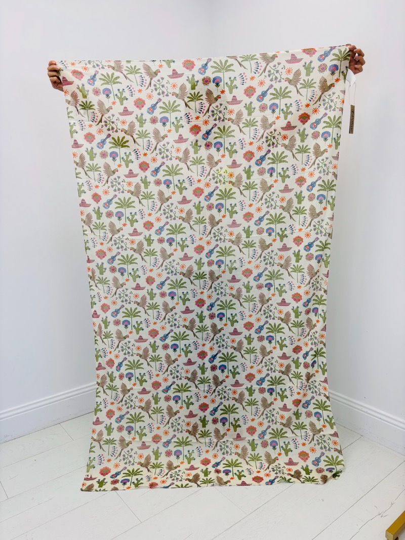 Son design riche en détails mêle fleurs, palmiers et motifs décoratifs, créant un effet graphique élégant qui rappelle l’univers des imprimés artisanaux et des tissus traditionnels revisités. Les différentes combinaisons de couleurs apportent fraîcheur et caractère à l’accessoire.