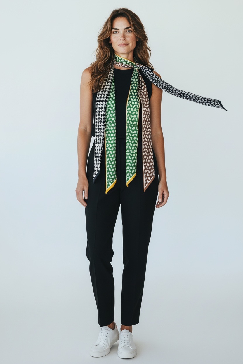 Ce foulard satiné se porte facilement noué dans les cheveux pour un esprit rétro chic, autour du cou pour une allure élégante ou attaché à un sac pour personnaliser une tenue. Il accompagne aussi bien des looks sobres que des silhouettes plus affirmées, devenant un détail mode essentiel du quotidien.