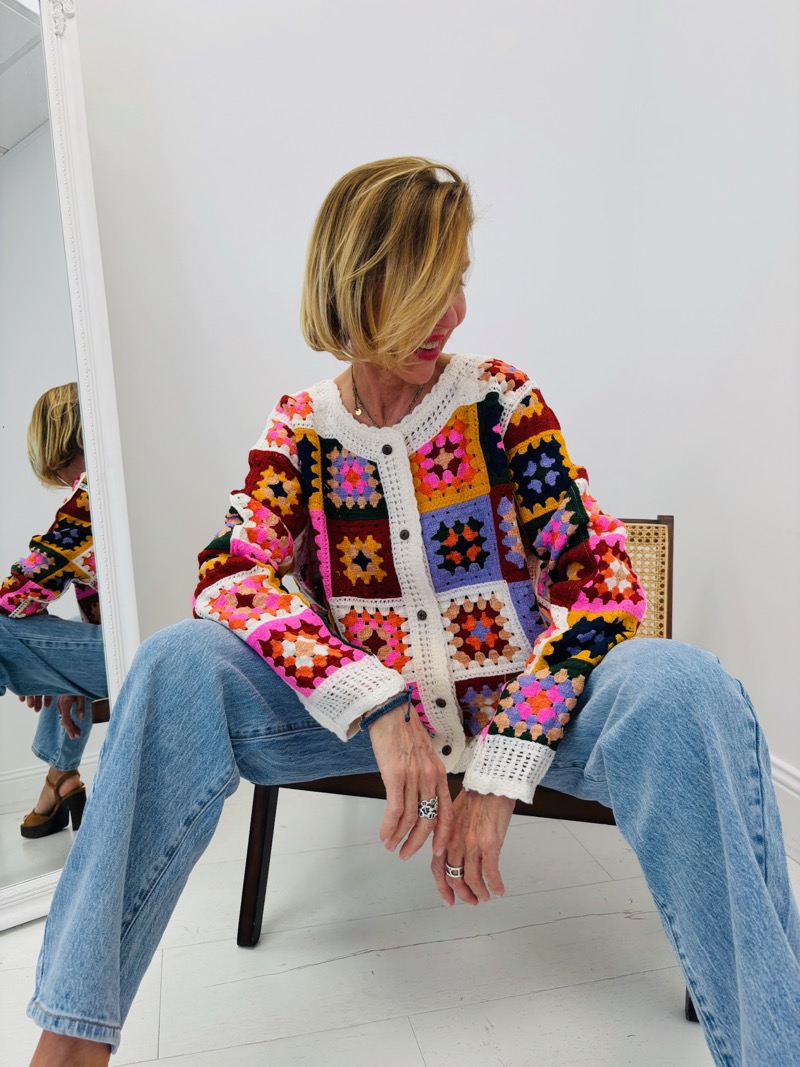 Découvrez l’élégance artisanale de notre gilet crochet, un choix parfait pour ajouter une touche unique à votre garde-robe. Conçu avec un soin impeccable, ce gilet offre un style distinctif grâce à son motif multicolore vibrant.