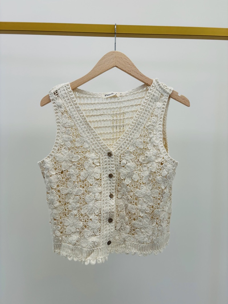 Gilet Crochet Écru