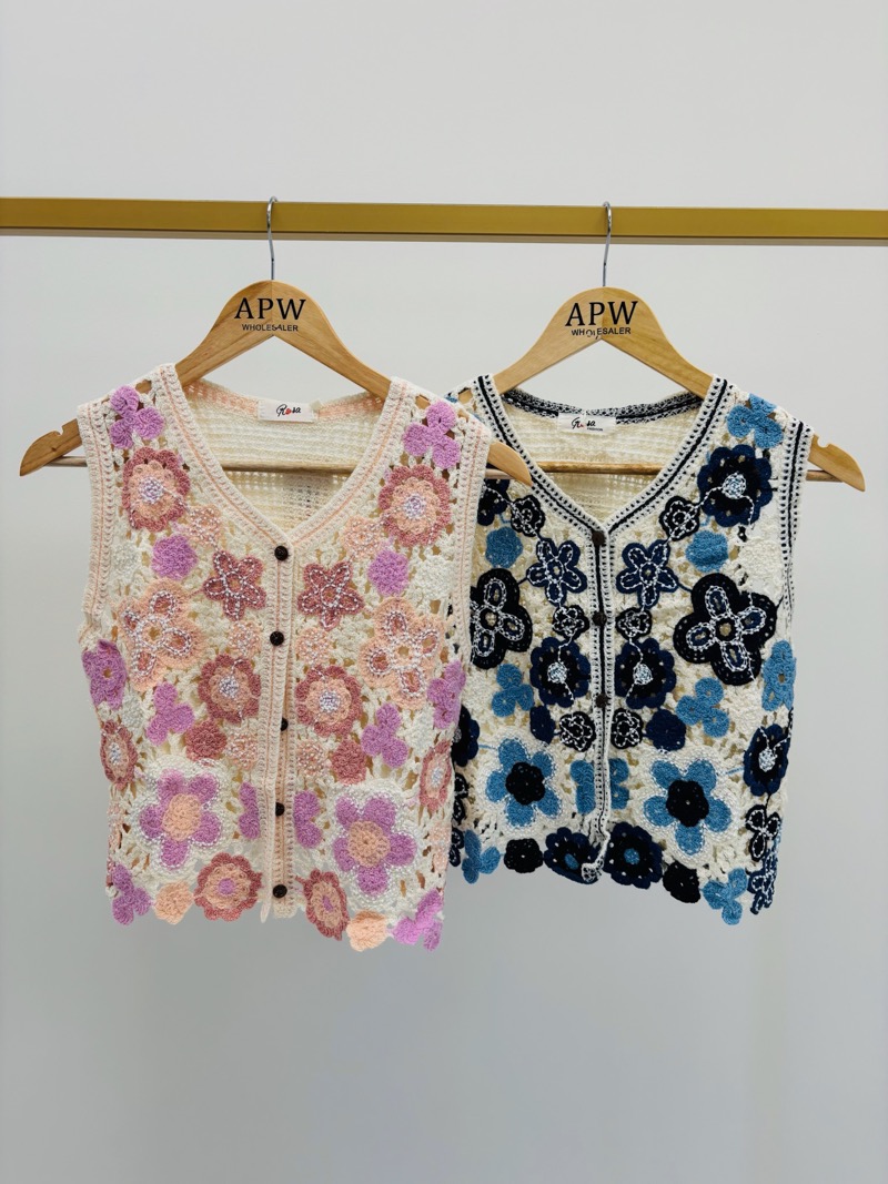 Ce gilet crochet est orné de détails perles raffinés, parfait pour ajouter une touche chic à votre tenue. Conçu avec soin pour un look unique et élégant.
