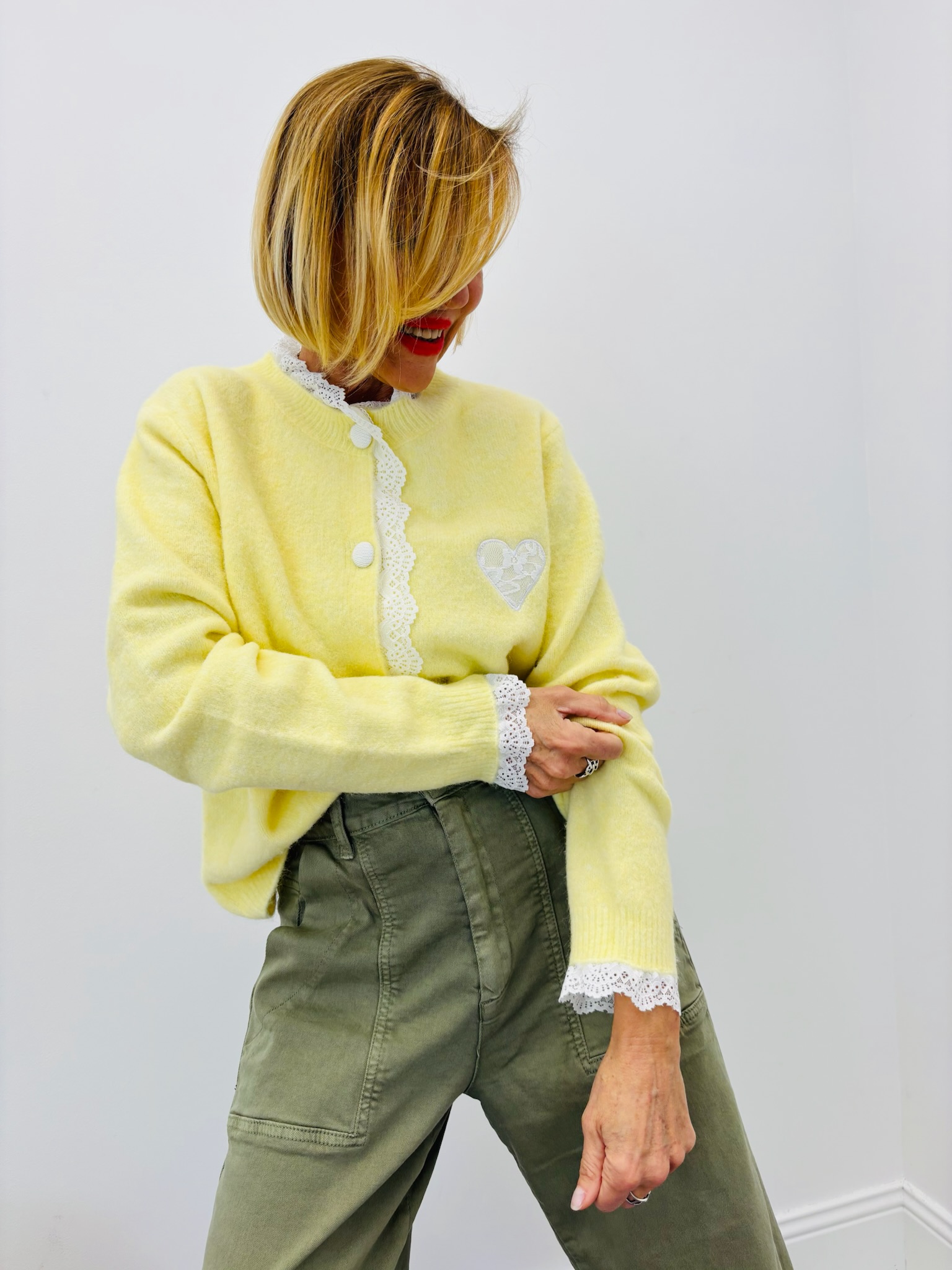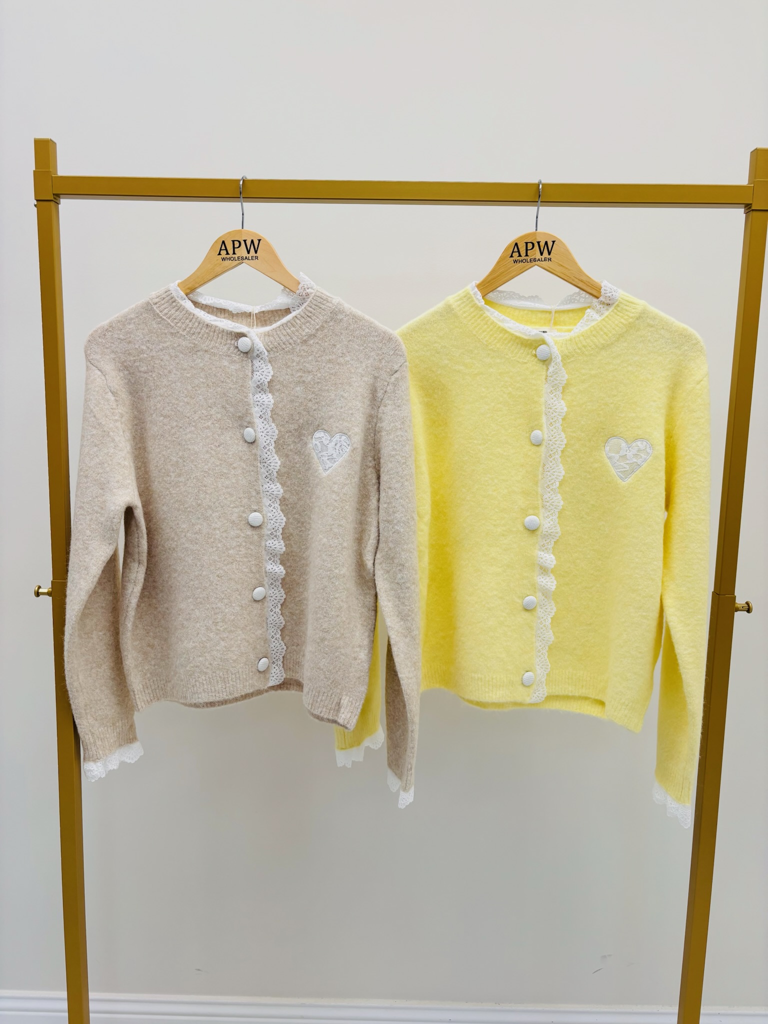 Gilet En Maille Douce À Détail Cœur Et Dentelle