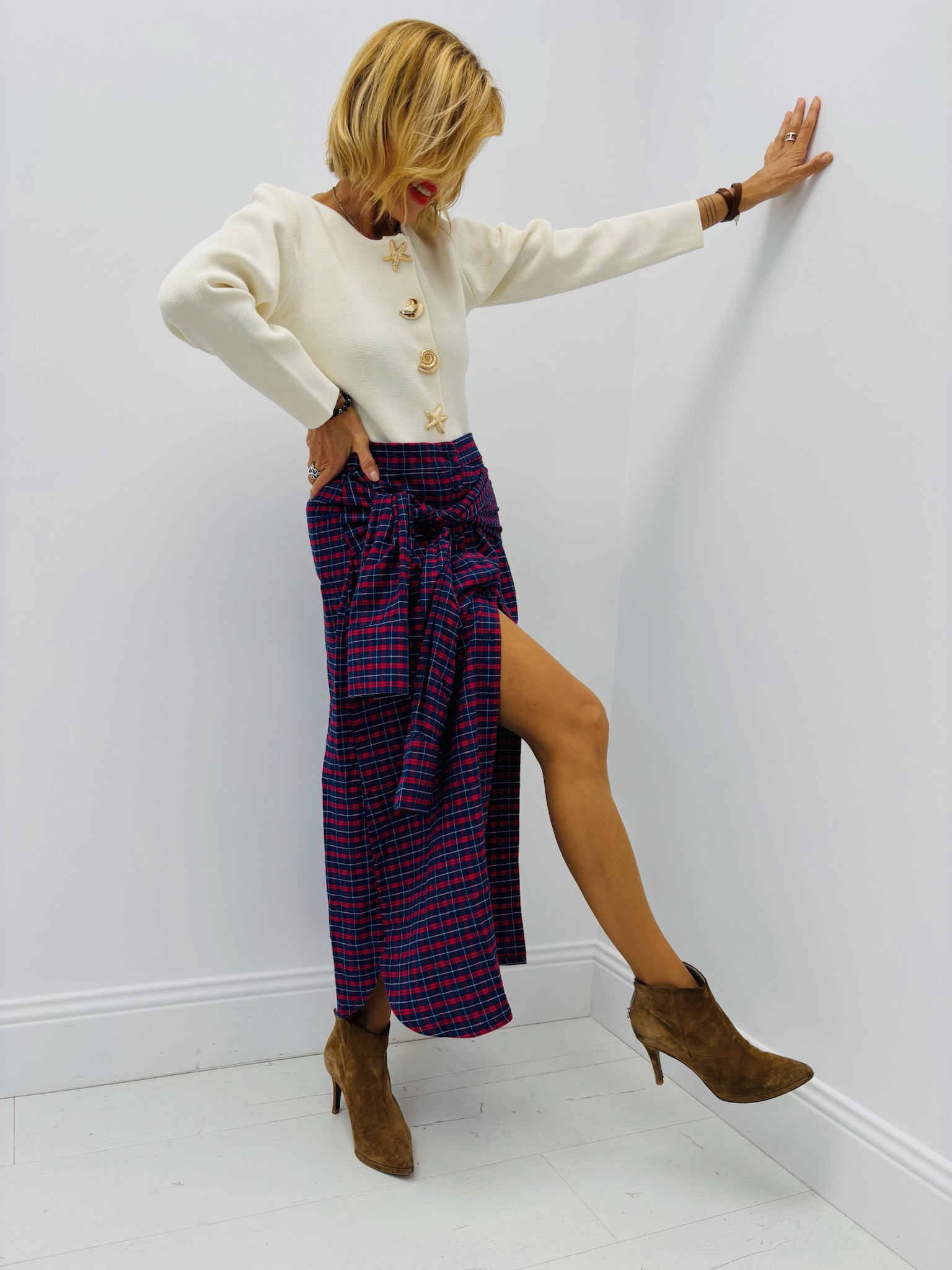 Un gilet raffiné à l’allure couture, confectionné dans une maille douce et fluide en viscose. Sa coupe droite élégante est sublimée par de superbes boutons dorés fantaisie en forme d’étoile de mer, coquillage et lune, qui lui apportent une touche chic et originale.