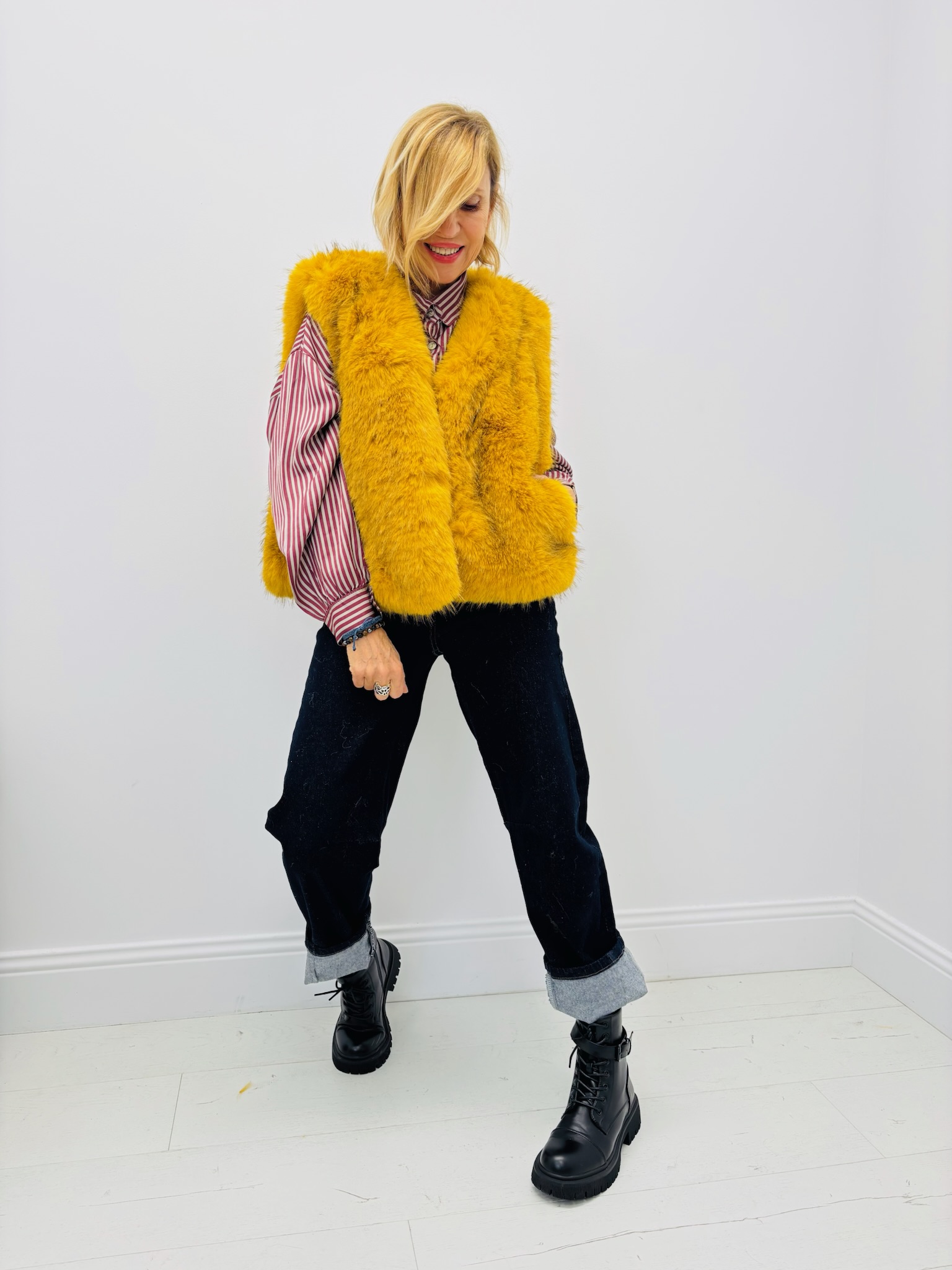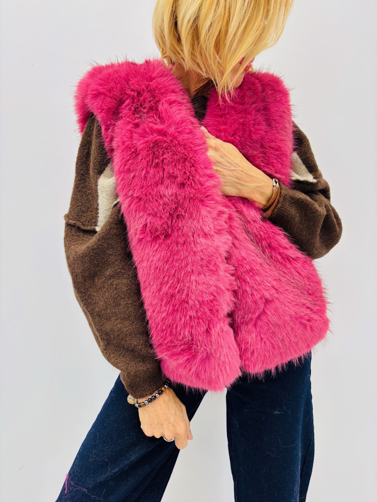 Une pièce iconique signée Alex Max, la maison italienne réputée pour son style chic et audacieux. Ce gilet en fausse fourrure se distingue par sa coupe moderne, sa texture ultra-douce et ses coloris vibrants. Idéal pour sublimer vos looks d’automne-hiver avec une touche de luxe et de confort.