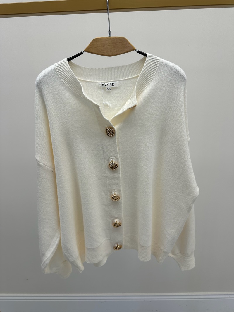 Gilet grande taille écru à boutons dorés – Élégance douce et intemporelle
