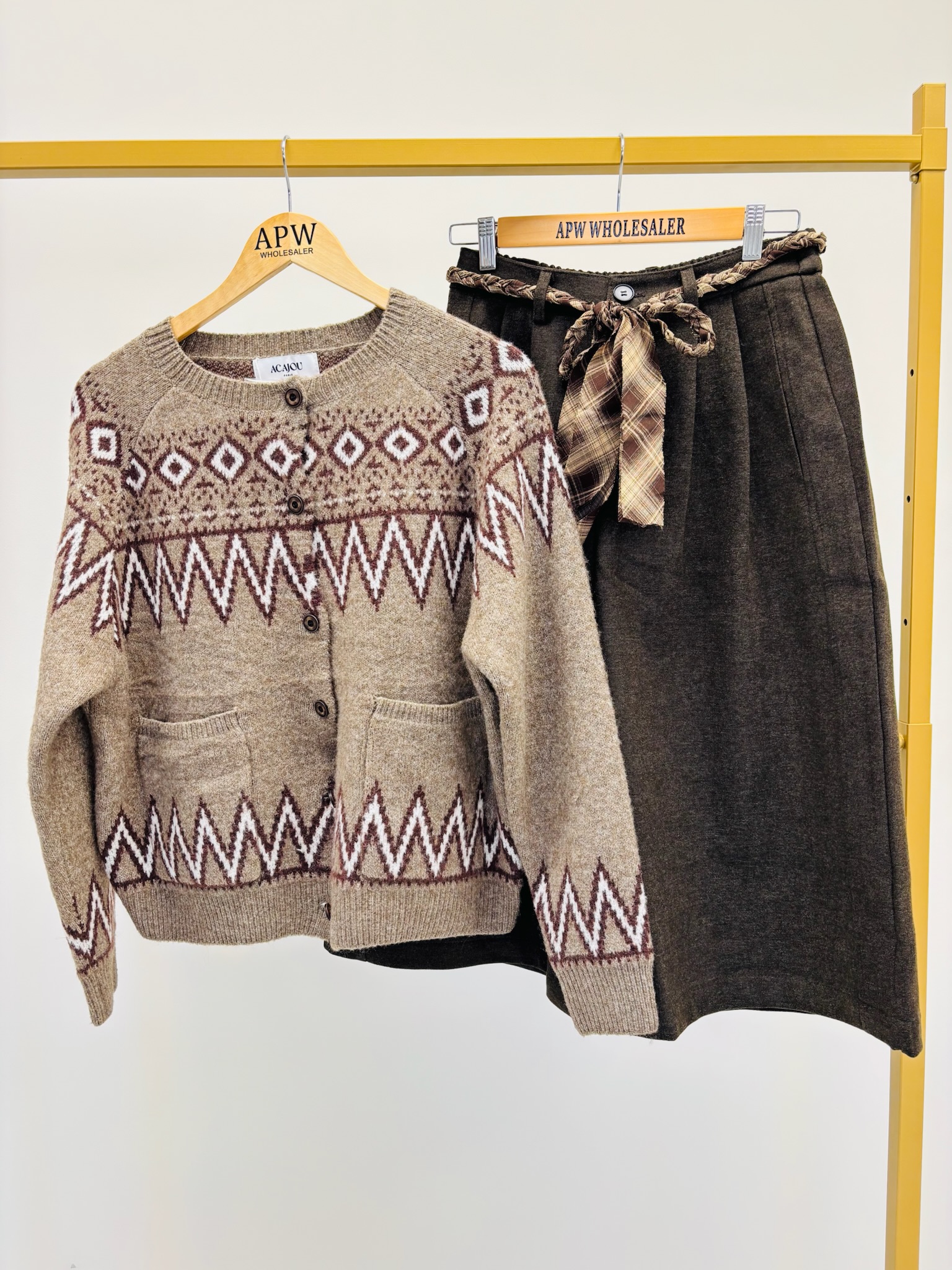 Ce gilet en maille jacquard est une pièce coup de cœur de la saison ! Confectionné dans une matière douce contenant 20% de laine, il allie confort, chaleur et authenticité. Son motif géométrique inspiré du style nordique lui donne une allure à la fois vintage et raffinée, parfaite pour l’hiver.