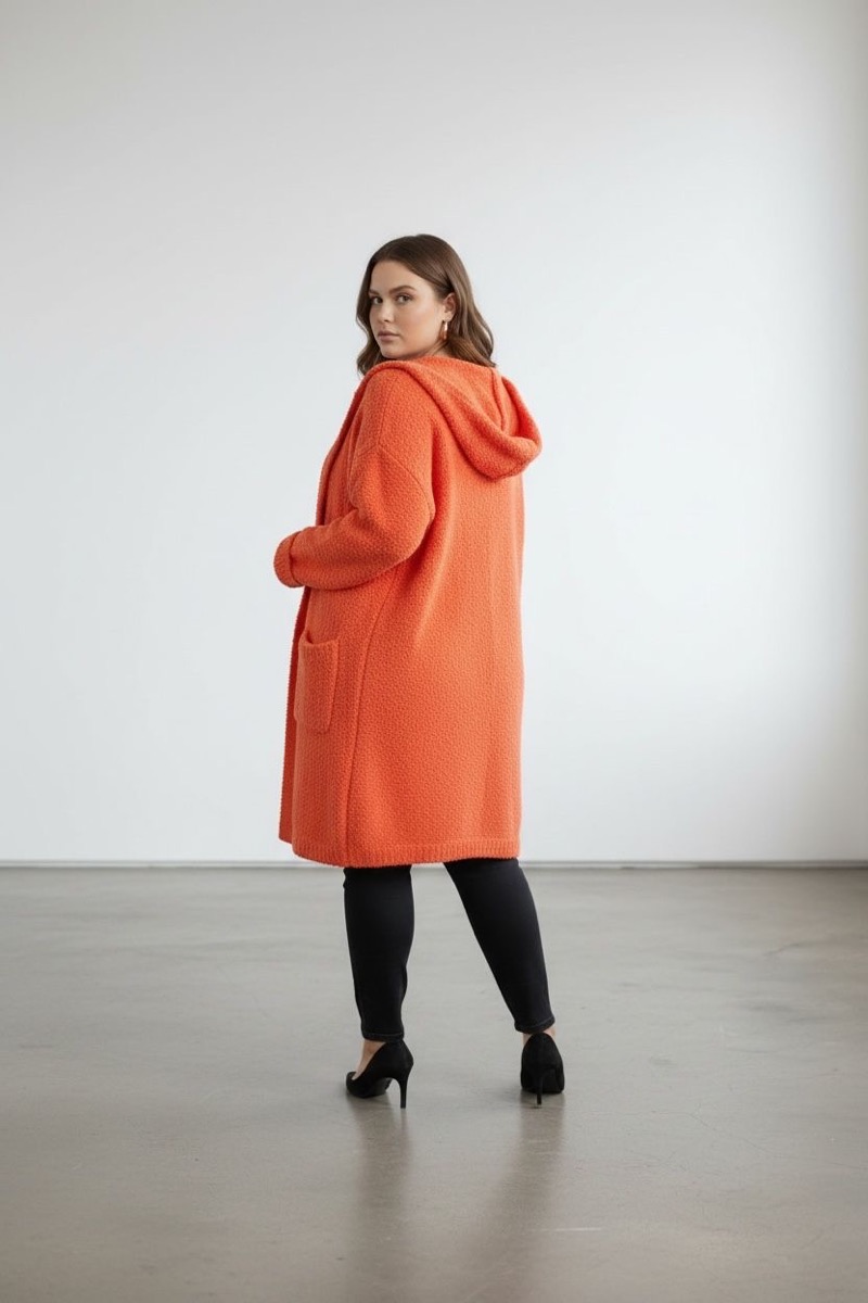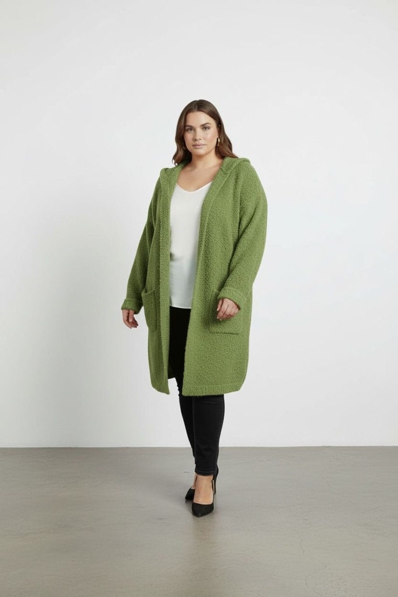 Ce gilet long à capuche allie chaleur, confort et style décontracté. Sa maille bouclette douce et moelleuse enveloppe la silhouette avec élégance, tout en offrant une coupe fluide et moderne. Parfait pour superposer sur vos tenues d’automne-hiver, il deviendra un indispensable du dressing grande taille.
