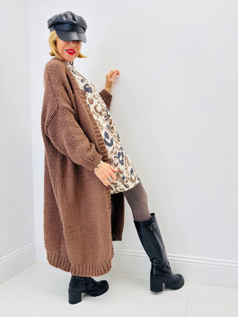 Un gilet cosy et tendance, parfait pour la mi-saison comme pour les journées plus fraîches. Sa maille épaisse en 55% coton apporte douceur, confort et respirabilité. Sa coupe longue et droite s’adapte à toutes les silhouettes et se porte facilement au quotidien.
