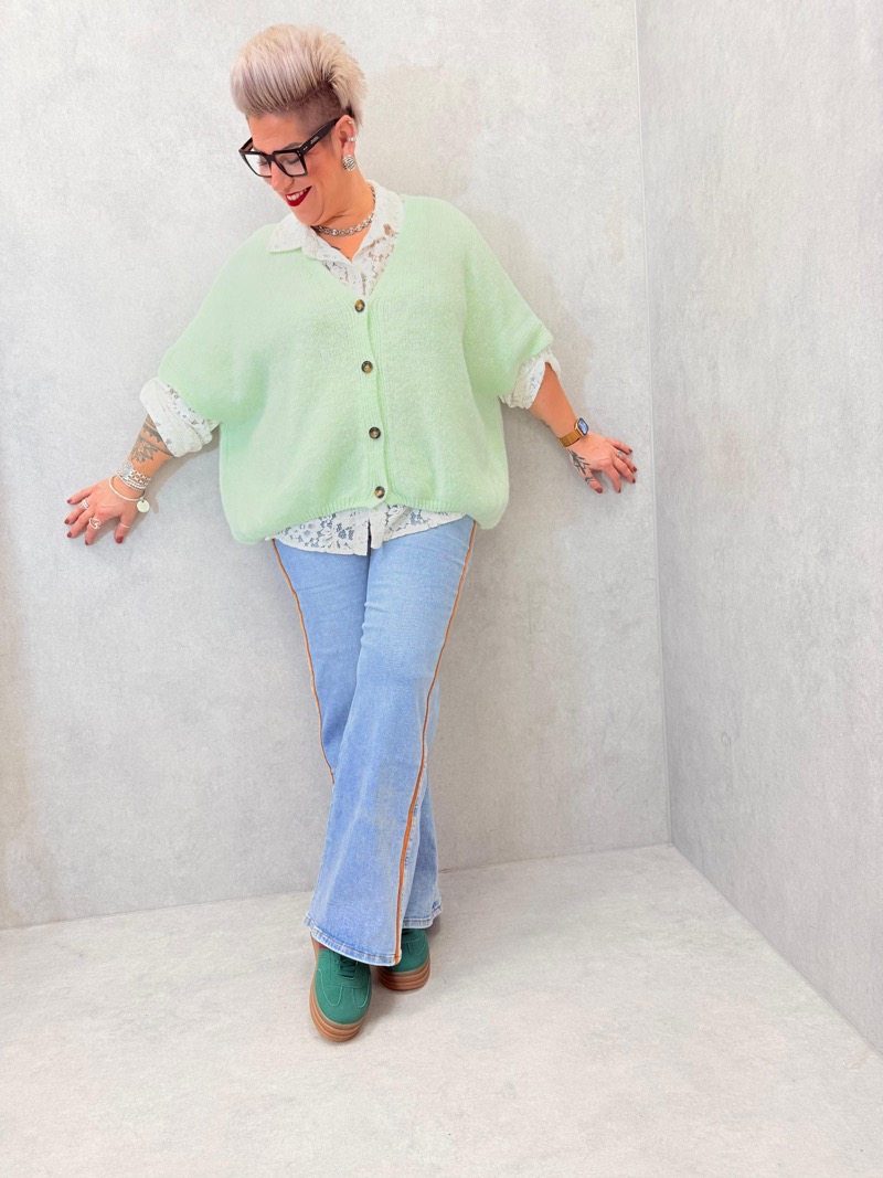 Ce modèle se distingue par sa polyvalence : il peut être porté seul comme un top, ou en superposition sur un débardeur ou un t-shirt fin. Sa maille légère en fait une pièce idéale pour la mi-saison, mais également pour les journées plus douces d’été. Proposé dans une palette de coloris lumineux et tendance, il apporte une note fraîche et actuelle aux collections grande taille.