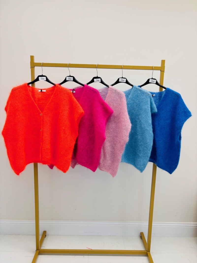 Ce gilet à manches courtes est une pièce forte et ultra désirable, parfaite pour apporter couleur, douceur et modernité à une silhouette. Confectionné en 80 % kid mohair, il se distingue par sa maille aérienne, légère et délicatement duveteuse, offrant un confort premium et une sensation de chaleur tout en restant respirant.
