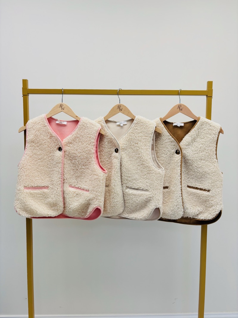 Sa particularité ? Son design entièrement réversible qui permet de varier les looks en un seul geste. Une face en moumoute écrue à l’aspect cocooning, et une face intérieure lisse colorée (rose, beige ou camel selon modèle) pour un rendu plus épuré et structuré. Cette double lecture mode en fait une pièce stratégique en boutique : deux styles en un seul produit.