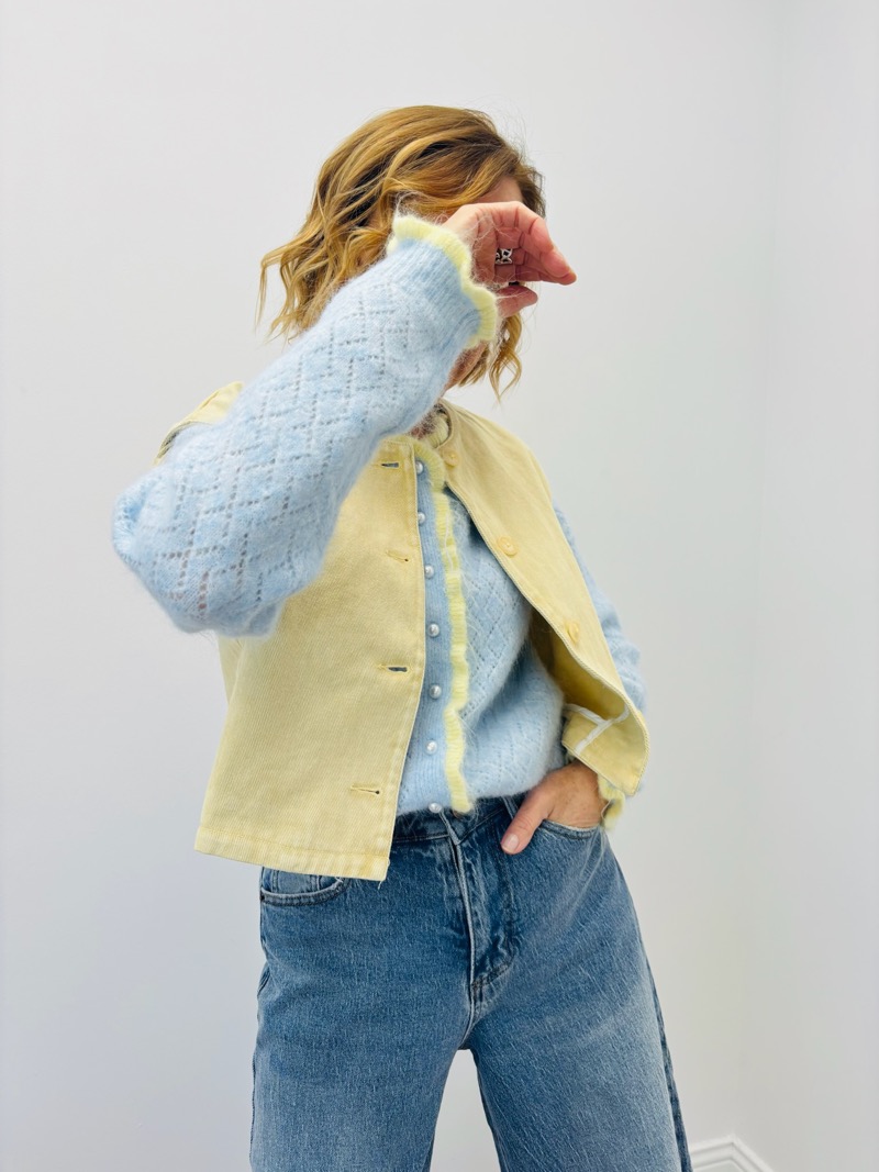 Porté en superposition sur un top, une maille fine ou une blouse, ce gilet en denim apporte une touche moderne et tendance à la silhouette. Il se marie parfaitement avec un jean pour un total look denim assumé, ou avec un pantalon plus habillé pour créer un contraste élégant.