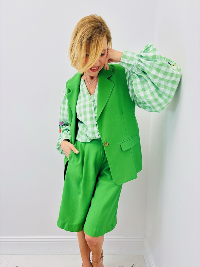 Disponible en plusieurs coloris vitaminés — vert intense, jaune pastel et rose poudré — il permet de composer aussi bien des silhouettes monochromes audacieuses que des looks plus doux et raffinés.