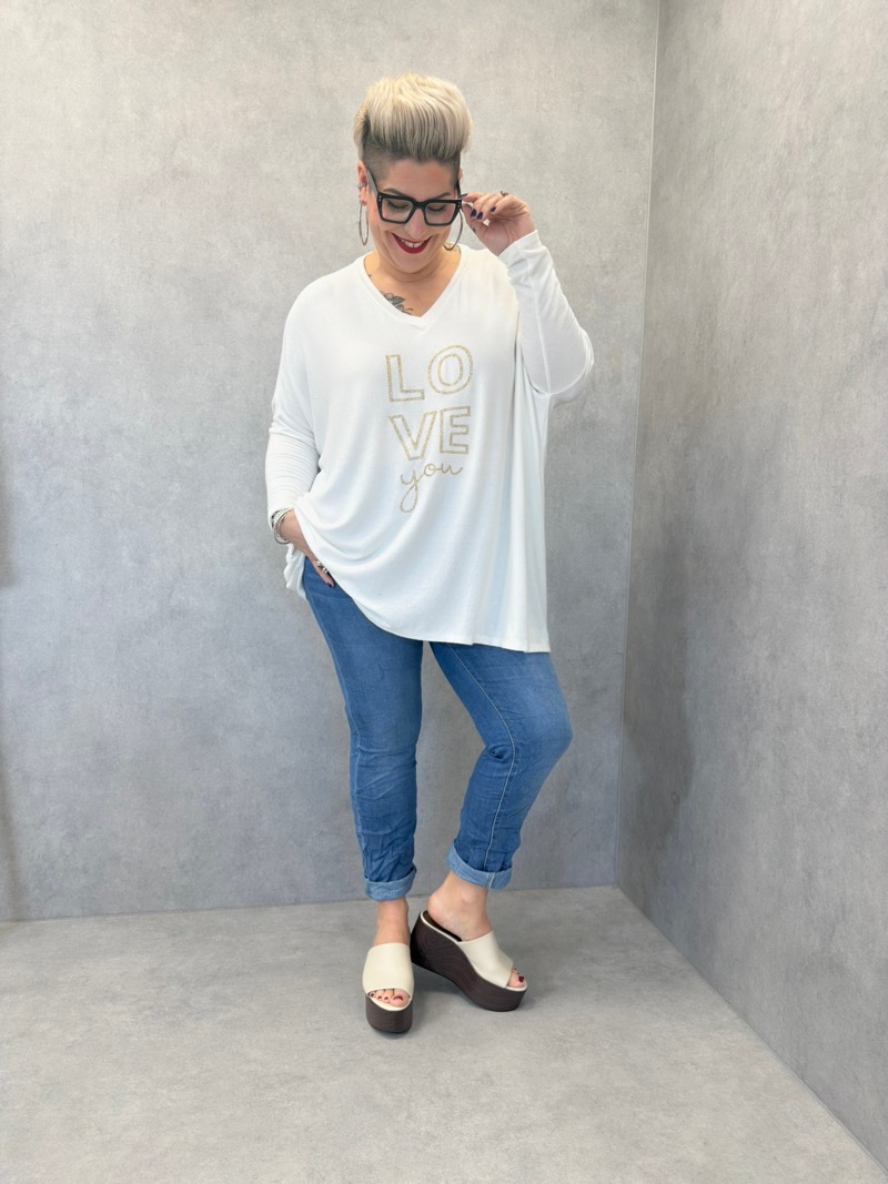 Haut Oversize “LOVE you” À Message Brodé – Confort Tendance Grande Taille
