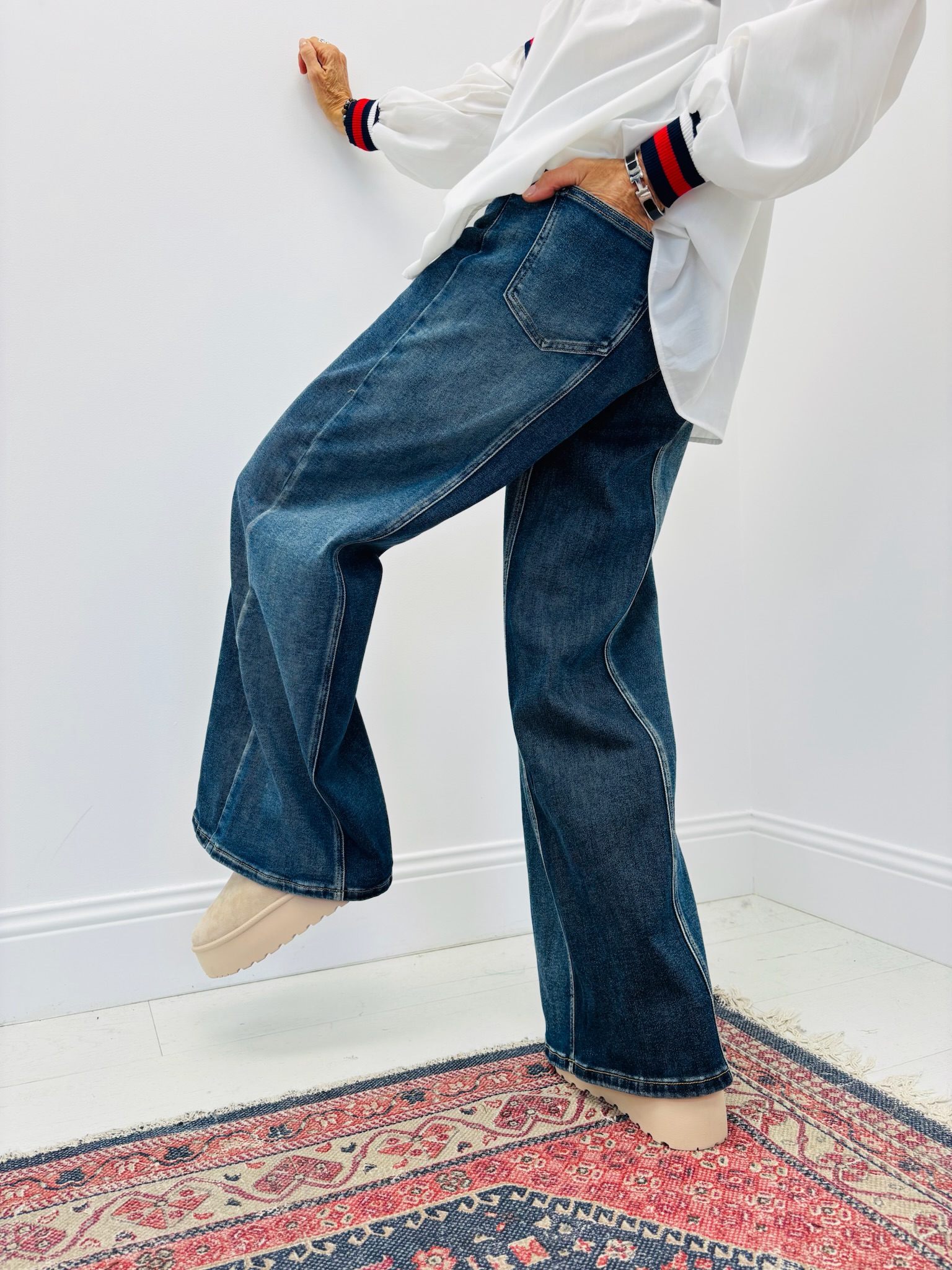 Confectionné dans un denim souple et légèrement stretch, il épouse la taille sans serrer et assure un tombé structuré.