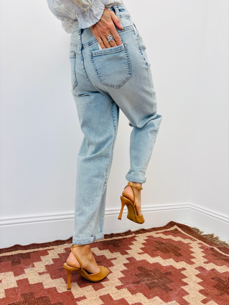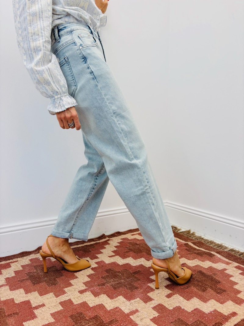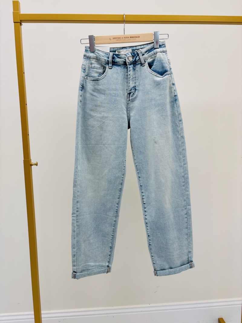 Tendance et facile à porter, ce jean coupe balloon en denim clair est un indispensable du vestiaire casual chic. Sa teinte bleu clair légèrement délavée apporte luminosité et fraîcheur à la silhouette, parfaite pour la mi-saison et la saison printemps/été.