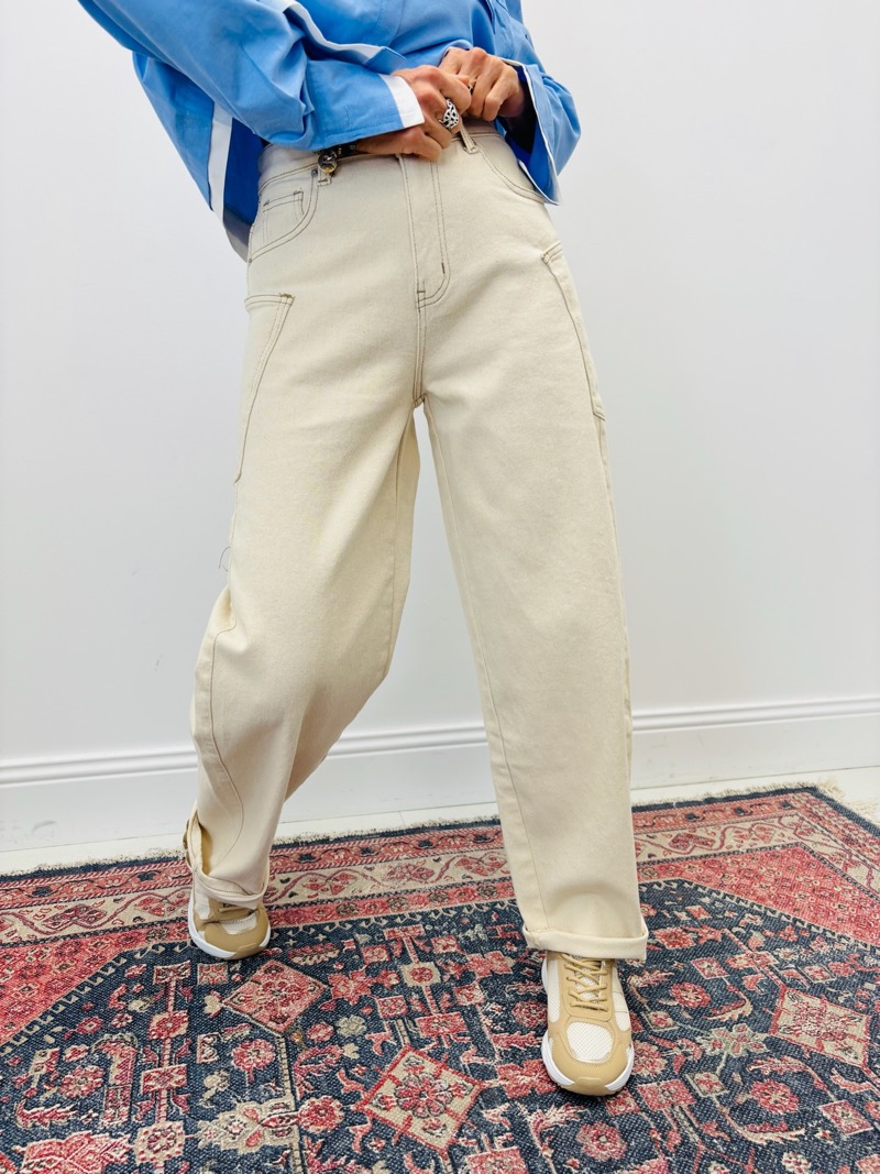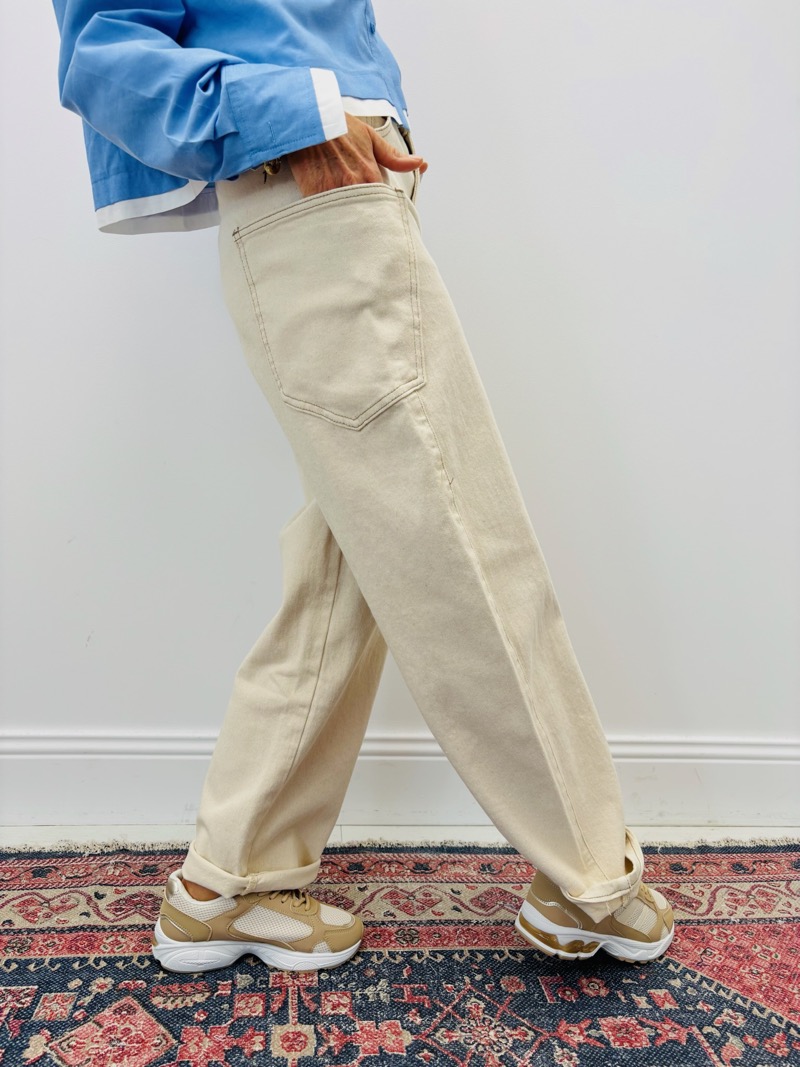 Un denim incontournable qui structure la silhouette avec modernité. Ce jean coupe balloon séduit par son volume généreux sur la cuisse et son resserrement subtil à la cheville, créant une ligne arrondie contemporaine et très flatteuse.