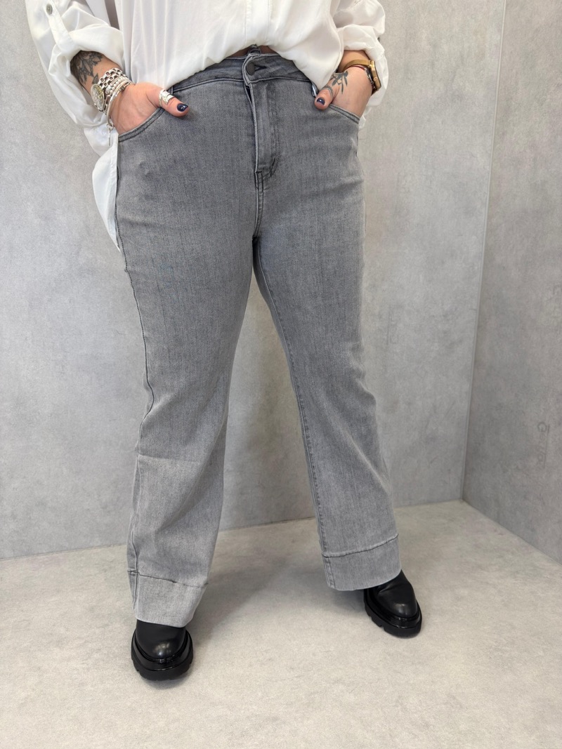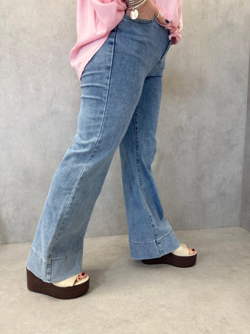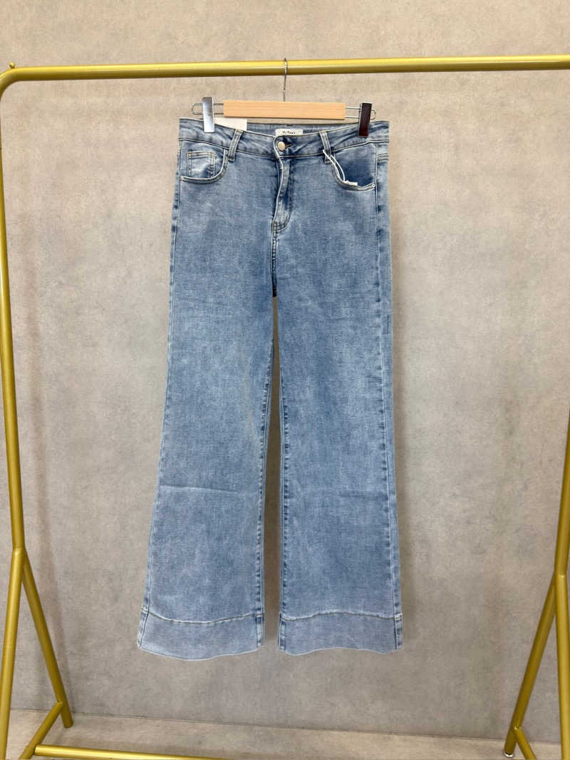 Sa taille mi-haute à haute assure un maintien confortable et met en valeur la ligne de hanches sans marquer. La coupe droite, subtilement évasée sur le bas, apporte une allure moderne et féminine, idéale pour s’adapter aux tendances actuelles tout en restant facile à porter saison après saison. Le détail du bas de jambe travaillé avec une finition large ajoute une touche mode discrète qui différencie ce modèle d’un jean classique.