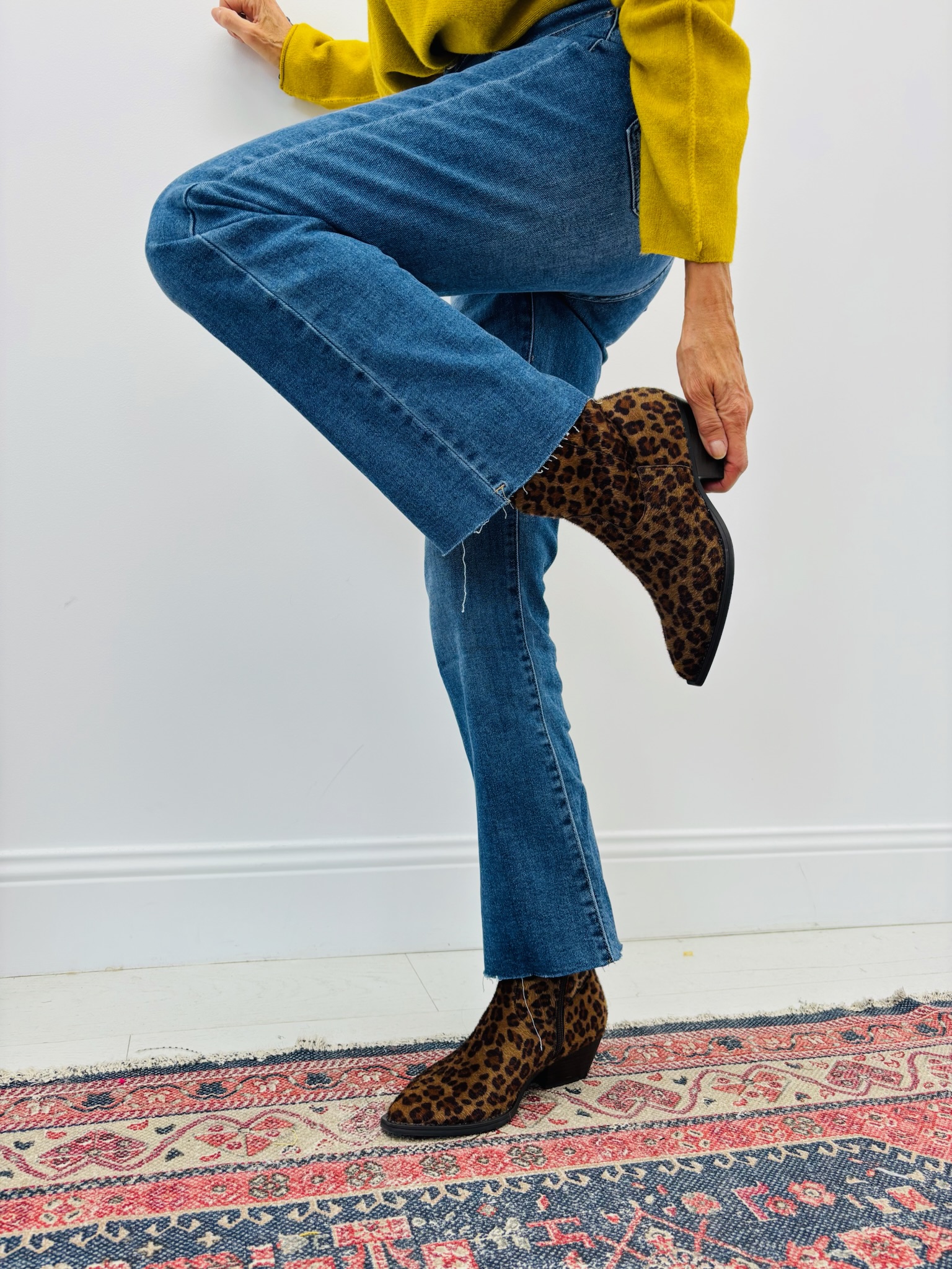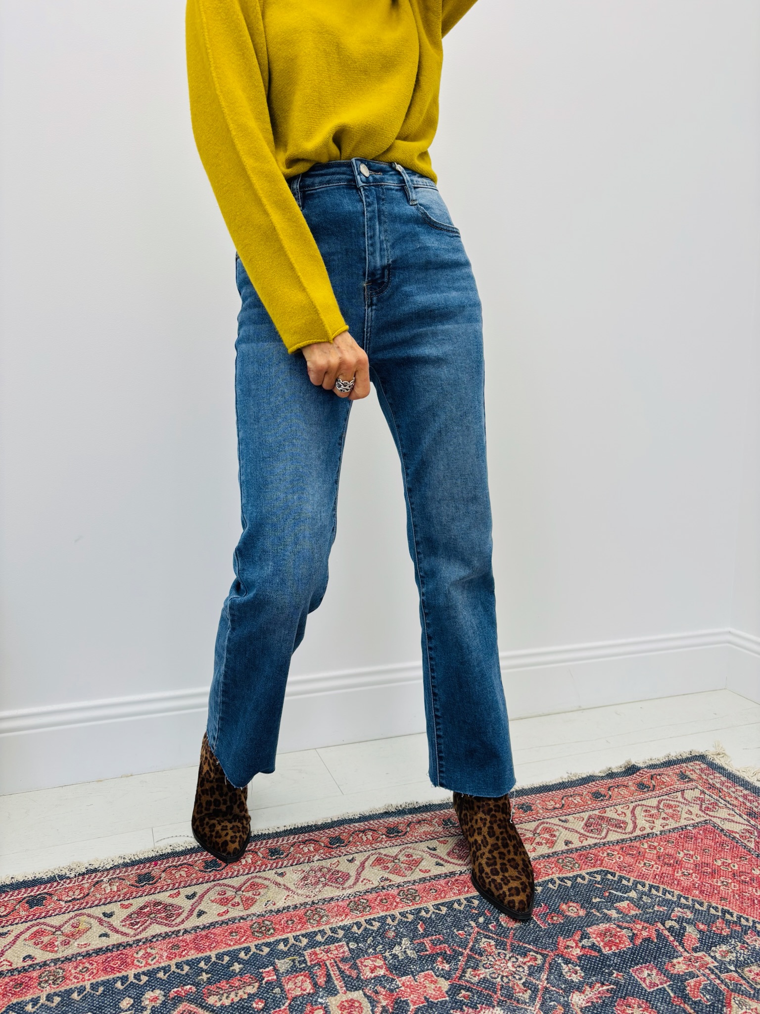Ce jean à la coupe flared (évasée à partir du genou) allonge la silhouette et apporte une touche rétro chic à vos tenues.